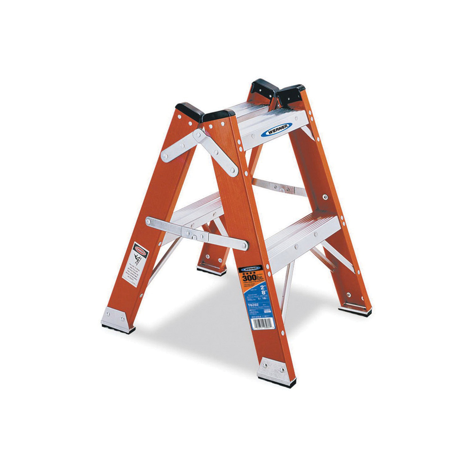 WERNER® T6202 Type IA Duty Twin Step Stool, 2 ft H, 300 lb Load, 3 Steps, 24 in Top Step, Fiberglass