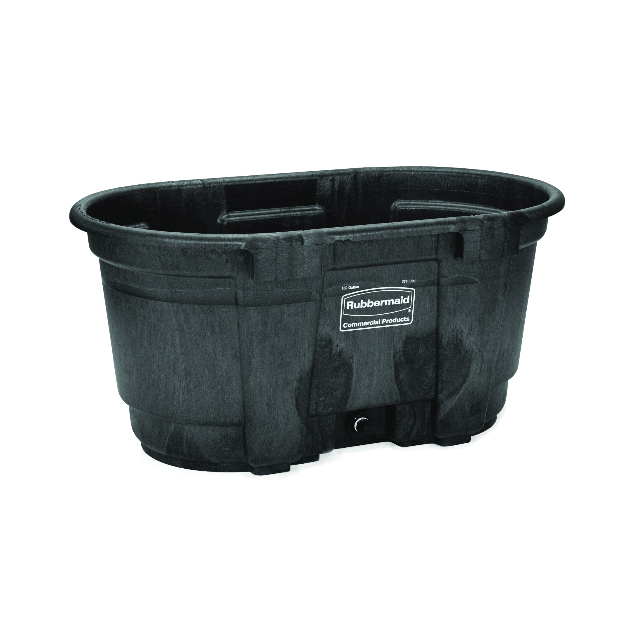 Designed for durability and built to perform, the Rubbermaid Commercial Products® 100 Gallon Stock Tank is made to handle the demands of daily farm life. Constructed with tough RigidCell™ technology, it resists cracking and fading in extreme weather conditions, for long-lasting reliability. Reinforced ribbing and stepped sidewalls provide added strength and stability. The oversized drain plug allows for quick and easy cleaning, helping save time during routine chores.