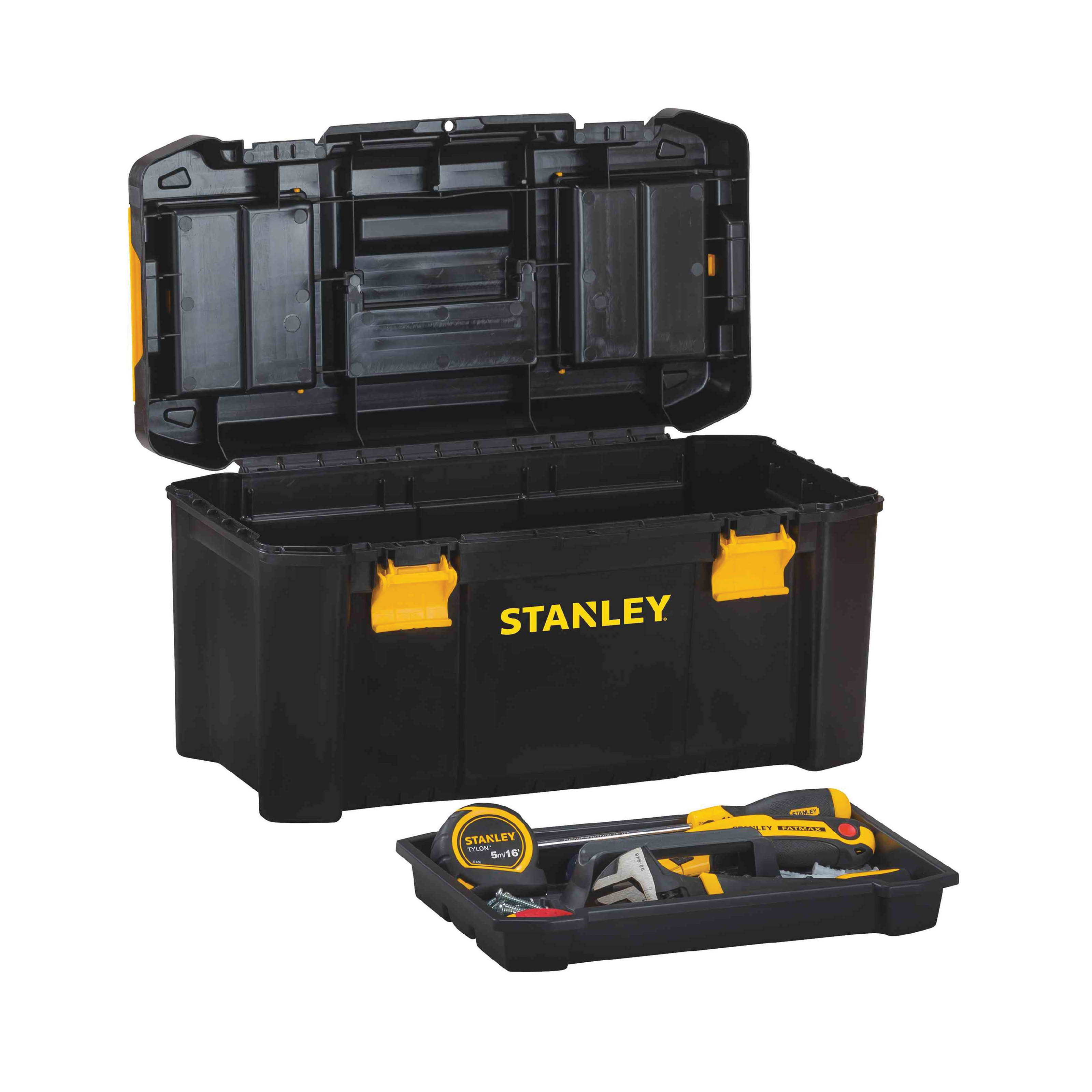 The STANLEY 19" Essentia Toolbox is newly redesigned and engineered to satisfy virtually any storage need.