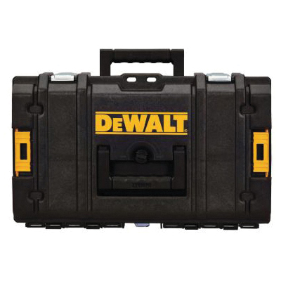 The DeWALT® tough System® allows any professional to build the storage option that fits their needs. Technicians, electricians and contractors can all use different combinations, eliminating the need for multiple storage boxes spread throughout the jobsite or workshop. this system offers contractors a means of organizing, sorting and transporting their tools and materials from one jobsite to the next. tough System® units can be stacked and locked together or they can be attached to the L-carrier (DWST08210) for easy transport. The DWST08201 is a robust briefcase with 4 carry handles that fits both power tools and accessories. It also features an integrated water seal for tool and material protection from rain, snow and other weather elements. A central locking mechanism allows the stand alone storage cases to securely attach to the carrier for easy transport. for jobsite security, padlock eyes permit locking of the stand alone units.