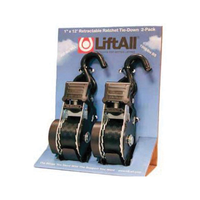 Lift-All® 60203 Retractable Ratchet Tiedown Assembly, 500 lb Load, 12 ft L, Polyester Strap