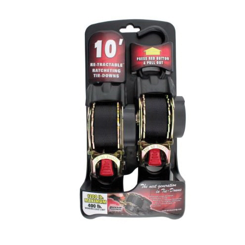 ERICKSON 34415 Retractable Ratchet Tiedown Strap, 1200 lb Load, 10 ft L, Hook End Style