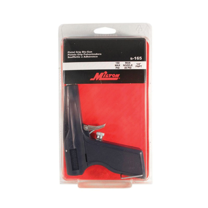 MiltonĀ® s-165 100 Deluxe Multi-Purpose Pistol Grip L-Style Blow Gun, 150 psi Working, 9-1/4 in L Tube, 1/4 in NPT Inlet Thread, Domestic