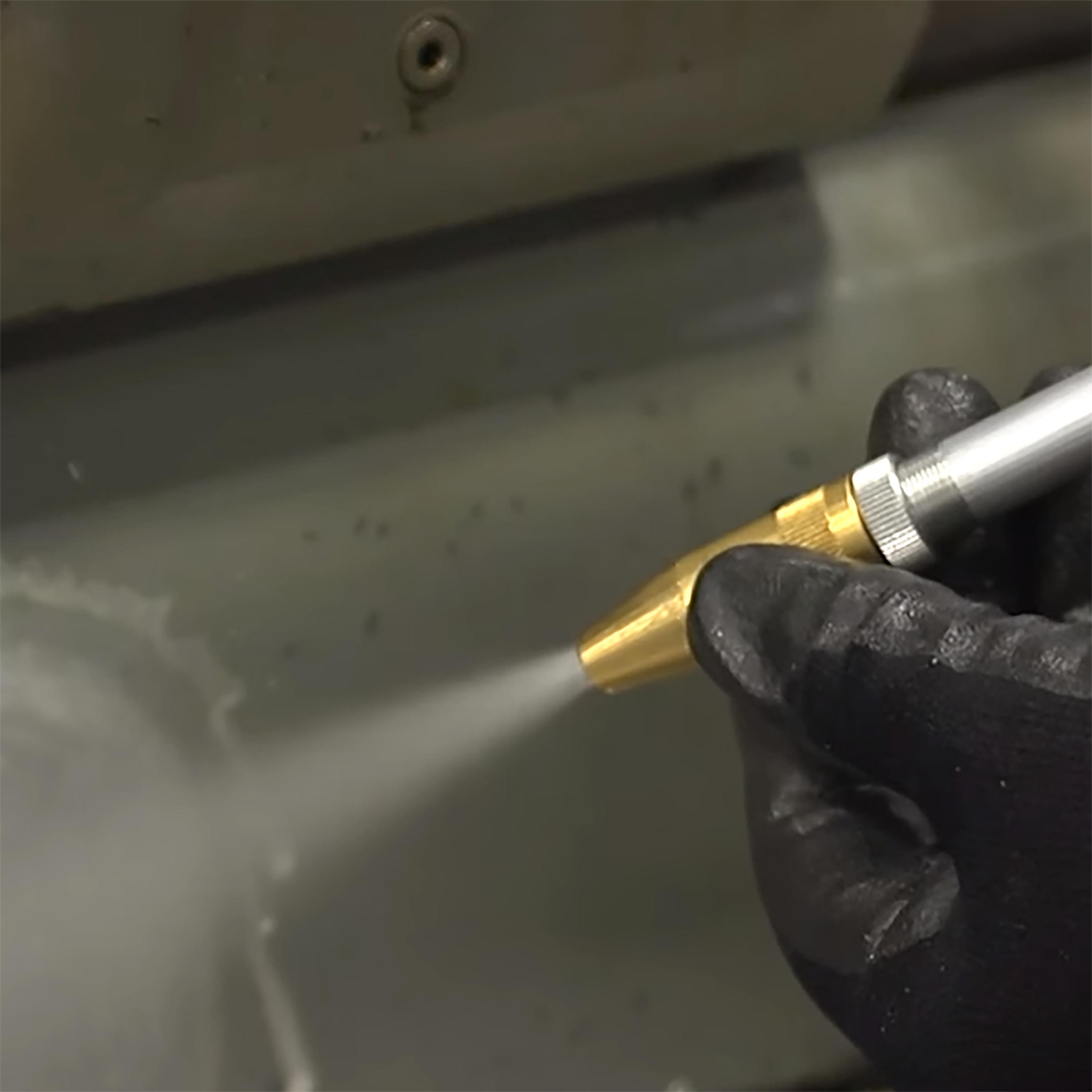 - Adjustable nozzle tip controls fluid flow and spray pattern for cleaning