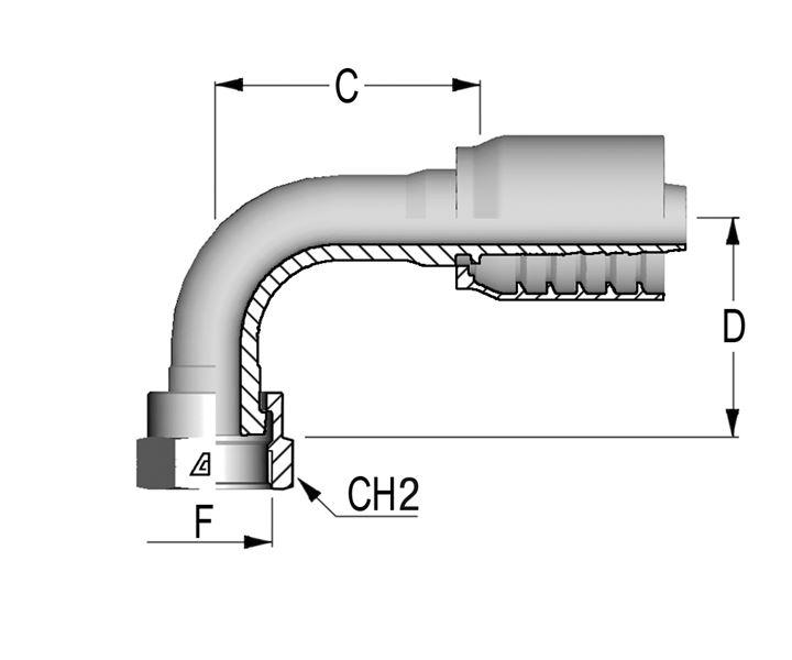 ALFAGOMMA® F-1216-FO9M F Series, 3/4 in Hose, 1 7/16-12 Connection, ORFS Female x Hose End Style, 70 mm Cutoff Allowance, Import