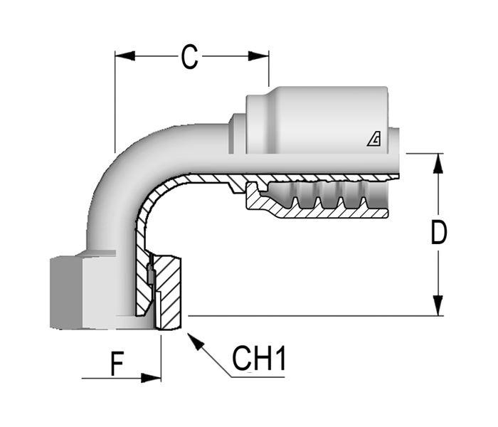 ALFAGOMMA® B-1230-FMOH B-1230 Hose Fitting, 3/4 in Hose, 30 x 2.0 Connection, Female Metric End Style, 37.0 mm Cutoff Allowance, Import