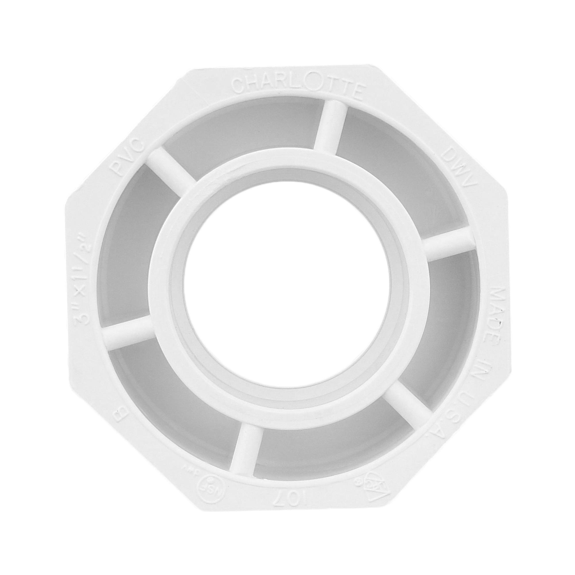 Charlotte PVC 00107 1200 Flush, 3 x 1-1/2 in nominal, Spigot x Hub end style, SCH 40/STD, PVC, Domestic