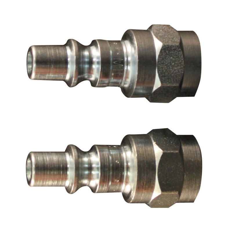 1/4 in MNPT A-style push type Coupler is a push type Coupler simply push plug into Coupler to engage, pull sleeve back to remove. Steel is plated to resist rust. Accepts the following Milton® A-style plugs - #778, #777, #777-4, #777-6, #1777-4 and #1777-6.1/4 in FNPT A-style plugs are made of case hardened steel and plated to resist rust. Maximum inlet pressure of 300 psi. Has a push type sleeve release.