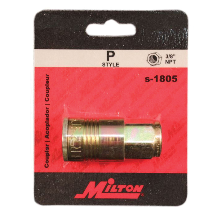 1/4 in MNPT T-style Couplers have a brass body and a Buna-N seal. Milton® T-style Couplers have a 1/4 in basic flow size and a maximum of 300 psi. Offers air flow of up to 40 scfm.