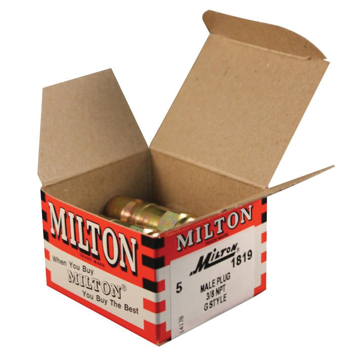 3/8 in MNPT G-style Plugs are made of case hardened steel and are plated to resist rust. G-style couplers and Plugs have a 1/2 in basic flow size and a maximum of 300 psi. Offering air flow of up to 99 scfm, Milton® G-style couplers and Plugs are perfect for applications that require over 60 scfm.