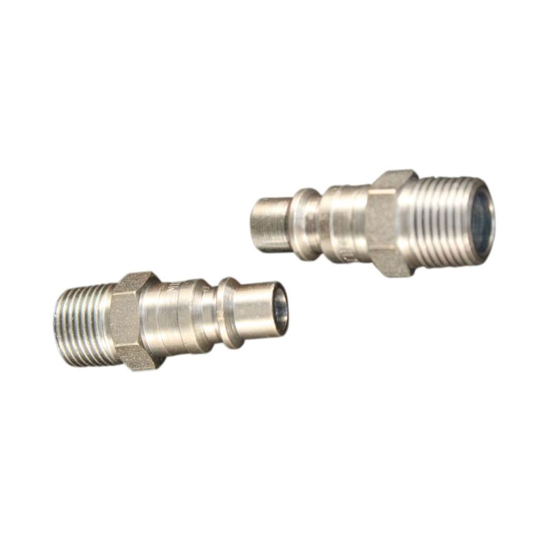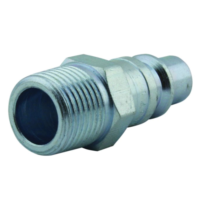 3/8 in MNPT H-style Plugs are made of case hardened steel and plated to resist rust. H-style Plugs have a basic air flow size of 3/8 in and a maximum inlet pressure of 300 psi. These Plugs are perfect for larger tool applications requiring more scfm.