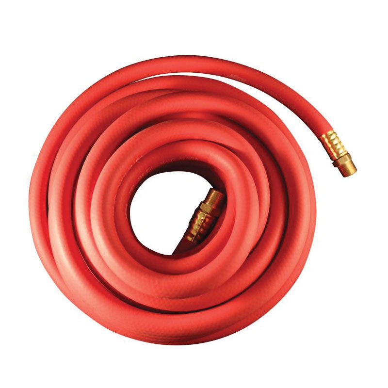 This 25 ft deluxe heavy duty EPDM rubber hose is designed for tough service station and shop applications. This 2 braid hose is kink-resistant and flexible in extreme temperatures. Also resists abrasions, weathering and ozone effects. 1/2 in ID and 1/2 in MNPT both ends.