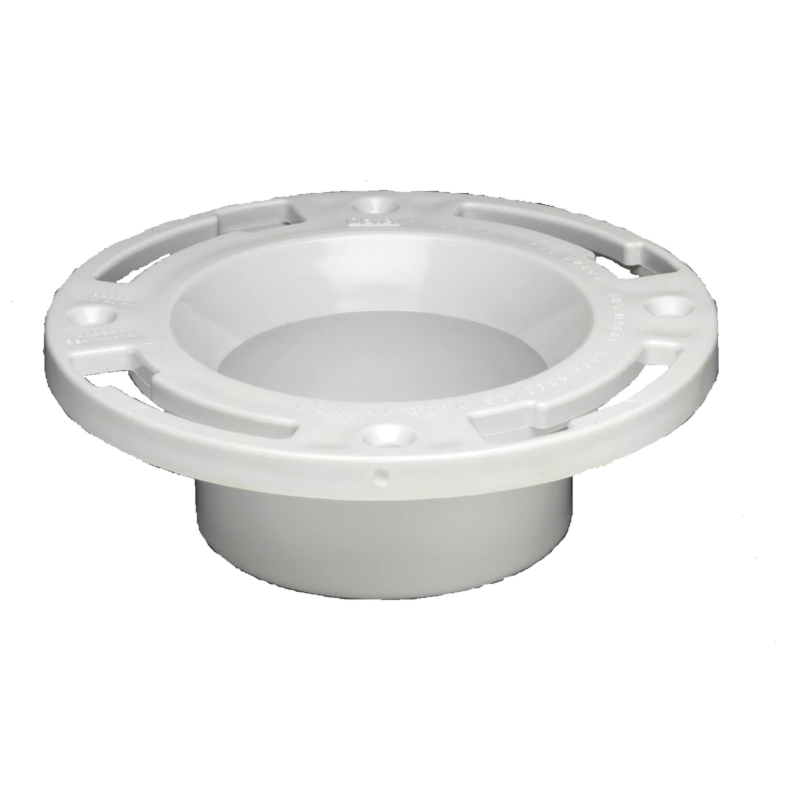 Oatey® Level Fit Closet Flange Plastic Ring quickly and easily connects water closet outlets to a plumbing system and sits flush with the floor.