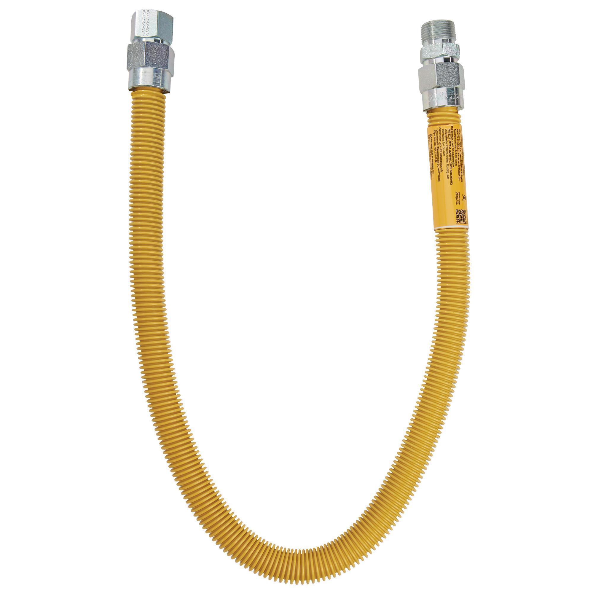 This 5/8 inch OD, 1/2 inch ID, durable, corrosion resistant stainless steel gas connector is configured with 1/2 inch MIP x 1/2 inch MIP adapters and is 36 inches in length. This CSA approved SafetyShield(R) gas connector has a premium antimicrobial coating for increased safety, durability, and longevity. The yellow coating is an industry recognized color for gas lines and provides extra corrosion protection from accidental contact with harmful chemicals that may be found in household products. It is commonly used for the installation of home appliances such as gas ranges and furnaces. Item comes in a bag.