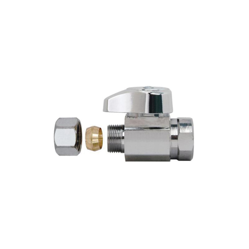 BrassCraft 3/8 in FIP Inlet x 3/8 in OD Compression Outlet 1/4-Turn Straight Valve controls water flow to household plumbing fixtures – faucets, toilets, dishwashers, icemakers, washing machines, etc. The straight valve is most often used where the water pipe enters the room from the floor. With a 90 degree turn of the valve handle, you are able to stop the flow of water leading to the plumbing fixture, allowing for maintenance and repair without shutting off the water to the entire home.