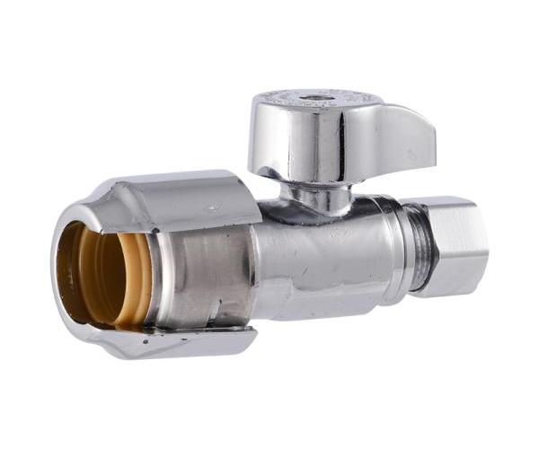 Sharkbite® UR23037 Straight Stop, 1/2 x 3/8 in Nominal, Push-to-Connect x Compression End Style, 125 psi Pressure, Lead-Free DZR Brass Body