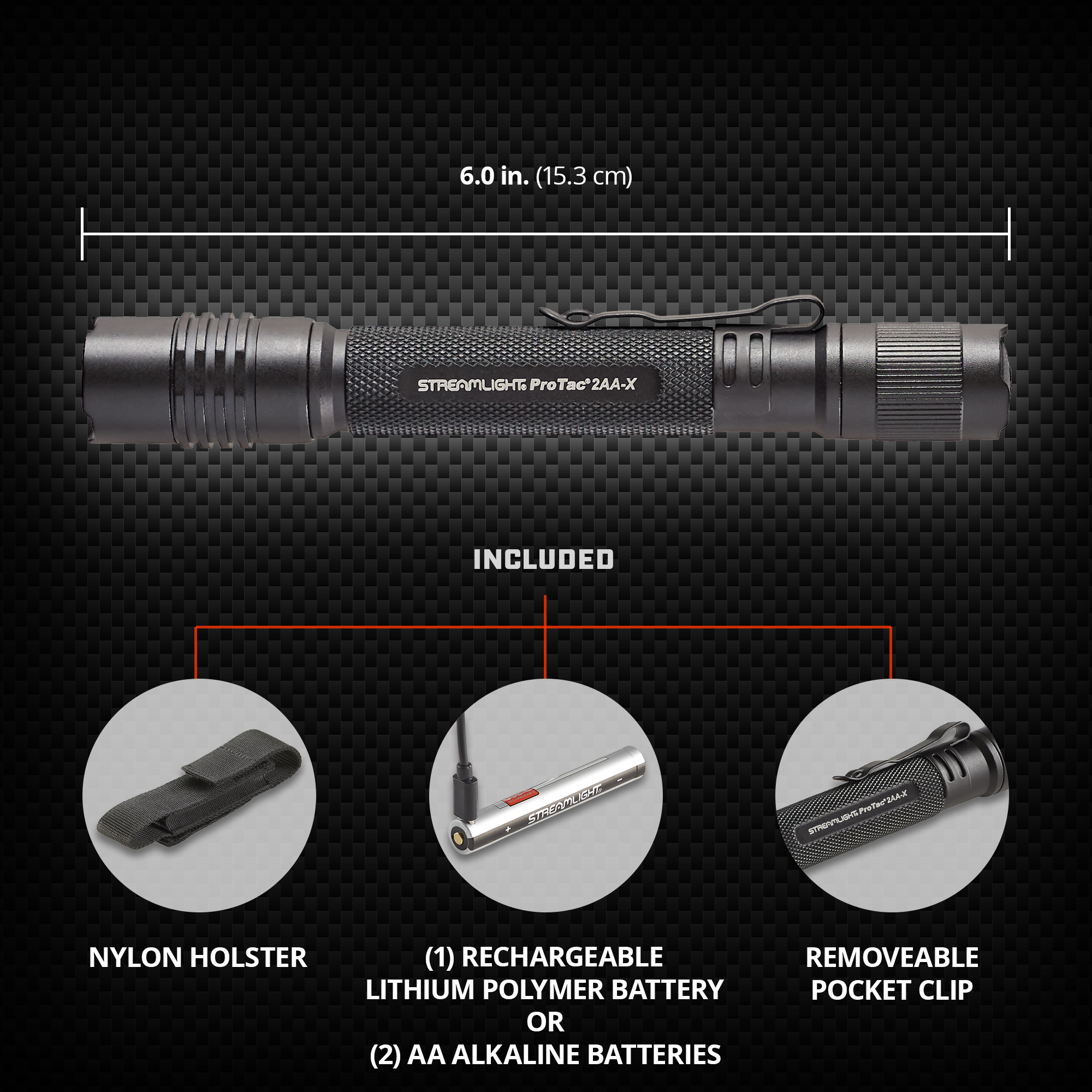 Small enough to carry in a pocket, lightweight, and yet extremely bright. Using two alkaline batteries, the ProTac® 2AA is a versatile personal carry light about the size of a marker that produces 250 Lumens of light. Powered by readily available "AA" batteries.