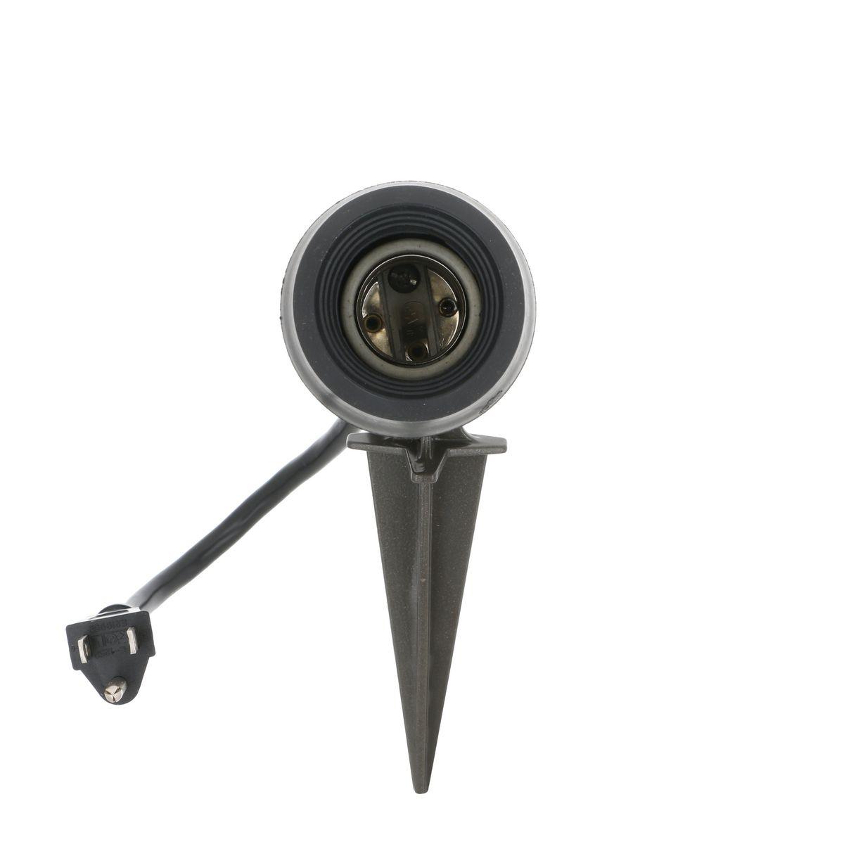 BELL® portable lamp holder assembly provides weatherproof protection for general outdoor lighting applications. The assembly includes a portable lamp holder complete with a ground spike. The unique locking swivel knuckle allows for easy and precise positioning.