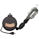 05360 20' 18/3" Drop Light With Metal Guard & Plastic Reel With Outlet, Built In Retractable Cord Reel, Circuit Breaker Prevents Overload To