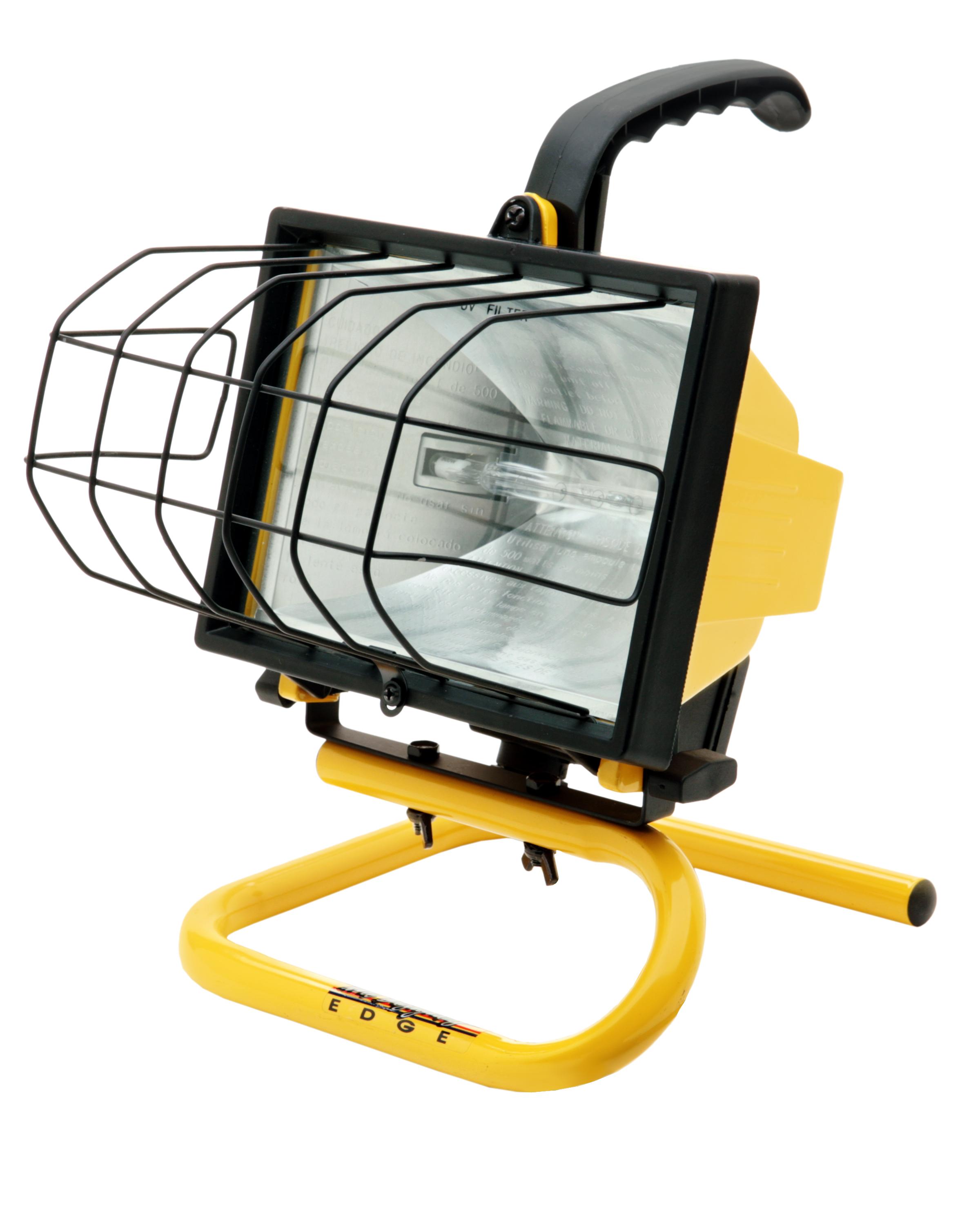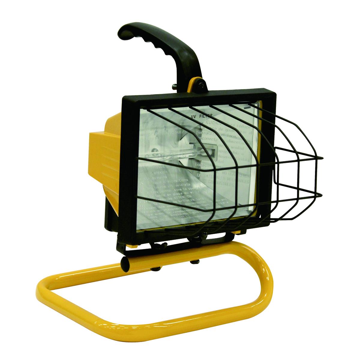 Southwire™ L20SW Portable Handheld Work Light, Yellow, 500-Watt. 500 watt portable halogen work light . Featuring all metal construction for long lasting durability . Shadow fighter grill helps reduce shadows caused by grill reflections. Tempered glass ensures safety around work place. 1-foot 18/3 grounded high visibility striped power cord. Grounded cord in high visibility yellow. 500w quartz halogen bulb included. 500w 120v, UL and CUL Listed. all metal construction for durability and long life. Shadow fighter grill reduces shadows caused by grill wires.