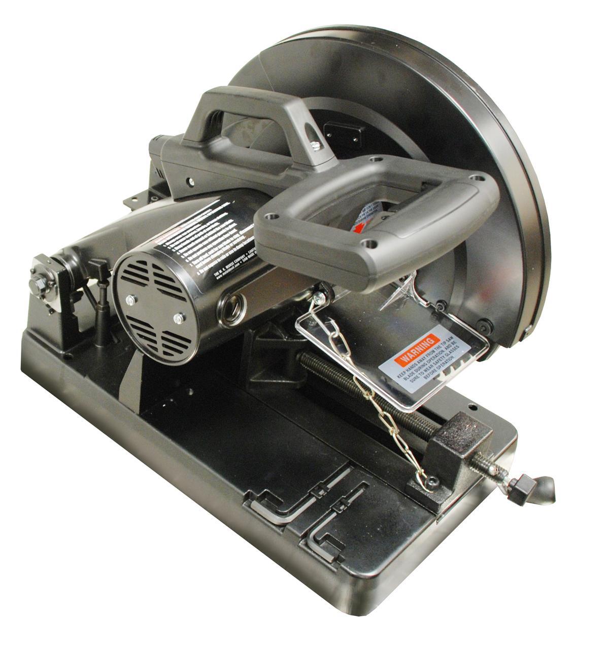 The Morse Metal Devil, CSM14MB (101172), 14" chop saw is designed for cutting ferrous and non-ferrous metals. Running at 1300 rpm, slower than standard abrasive saws, this machine cuts metal faster, longer, with accuracy, and a burr-free finish. Safety features include a retractable blade guard and overload switch. Use Morse Metal Devil 14", with a 1" arbor, application-specific saw blades for steel, aluminum, or stainless steel. Product package includes Morse Metal Devil, CSM1466FSB, steel cutting blade. Installation required.