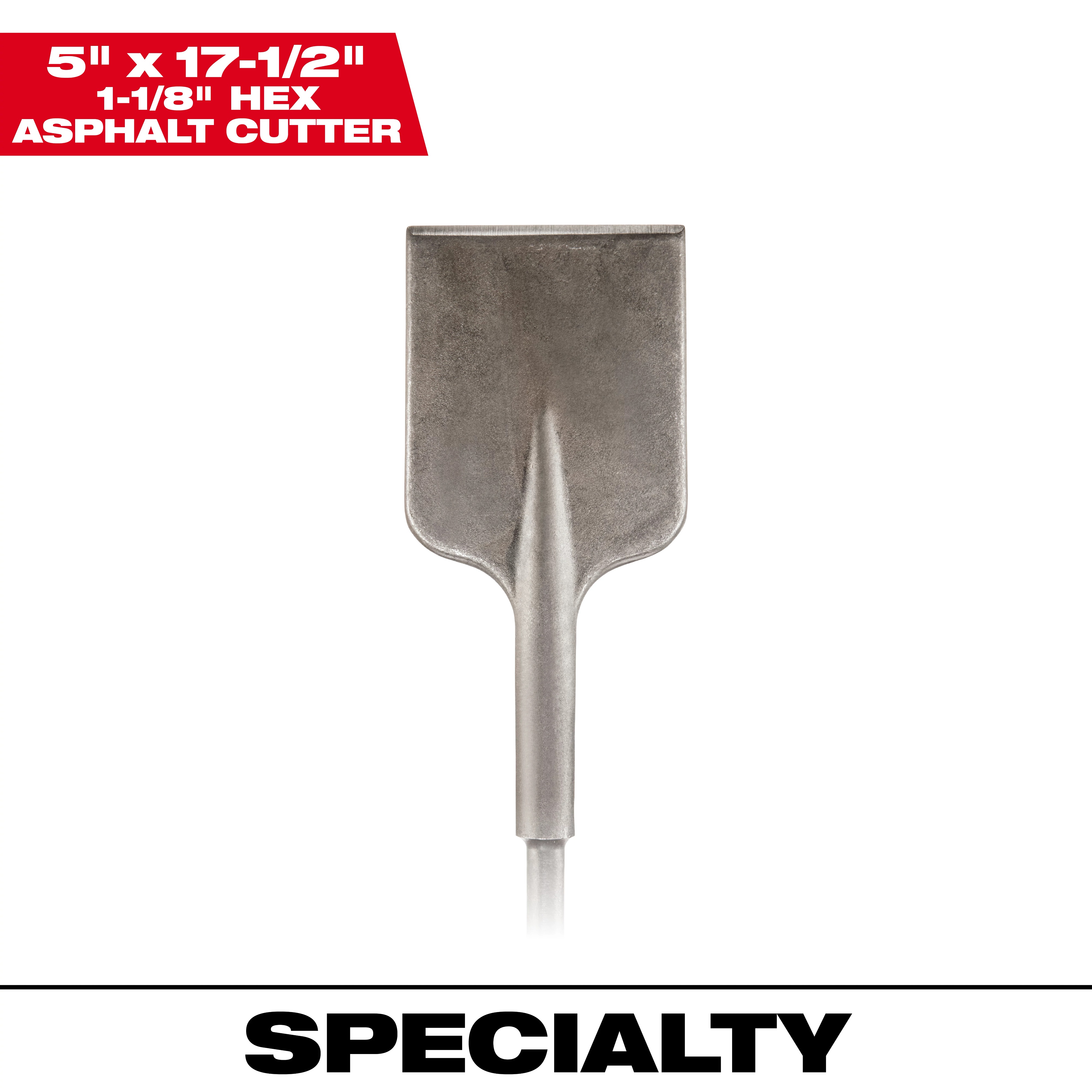 Milwaukee® 48-62-4020 Asphalt Cutter, For Use With Demolition Hammers, 5 in W Head, 17-1/2 in OAL, 1-1/8 in Collared Hex Shank with Notch