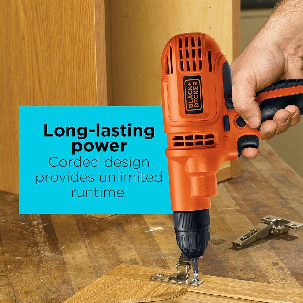 Ideal for drilling through a range of materials, this corded drill/driver features variable speed for extra control and on-board bit storage. A powerful 5.2 A motor tackles household tasks big and small.