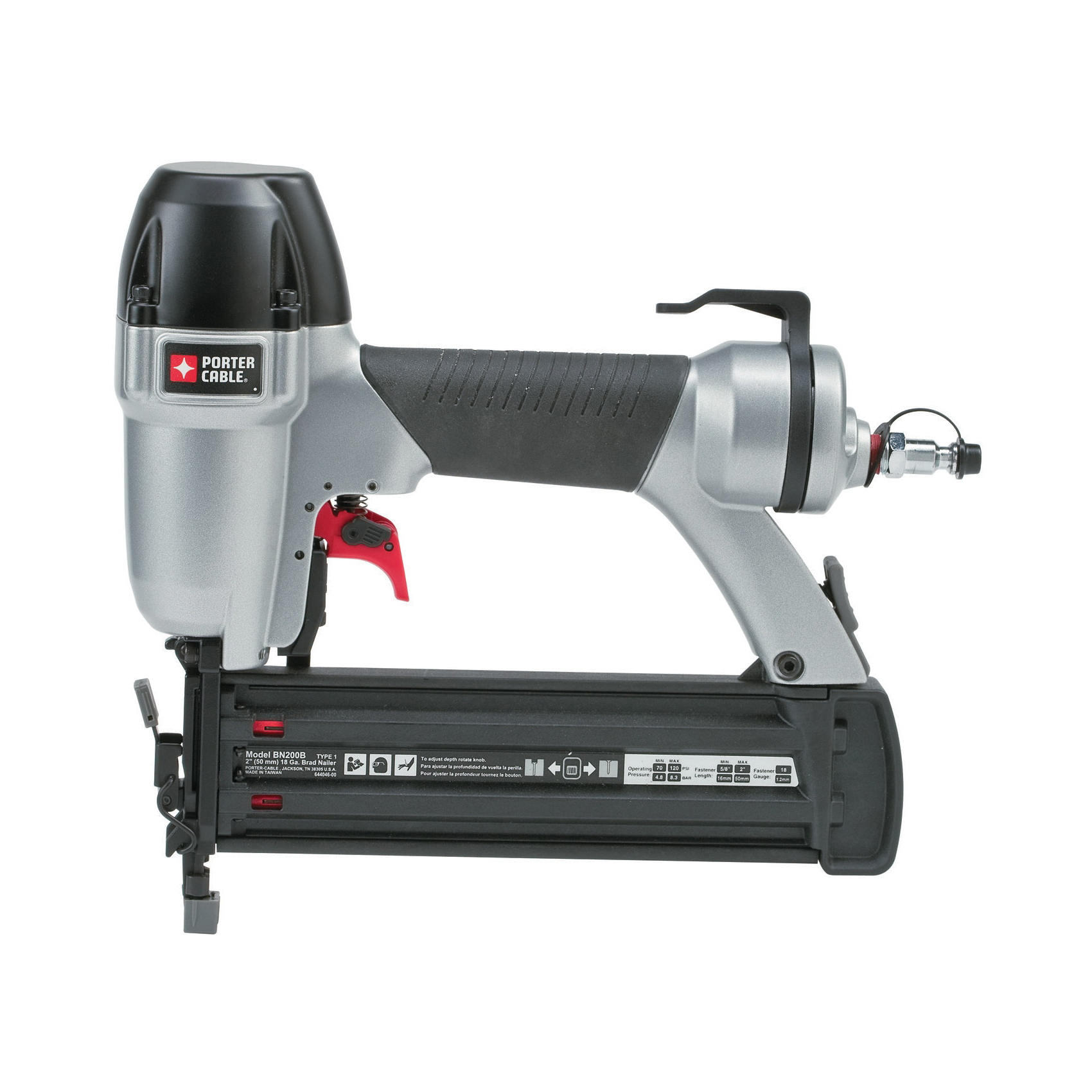 Porter-Cable® BN200B Brad Nailer Kit, 5/8 to 2 in Fastener, Adhesive Collation, 100 Nails Magazine, 70 to 120 psi