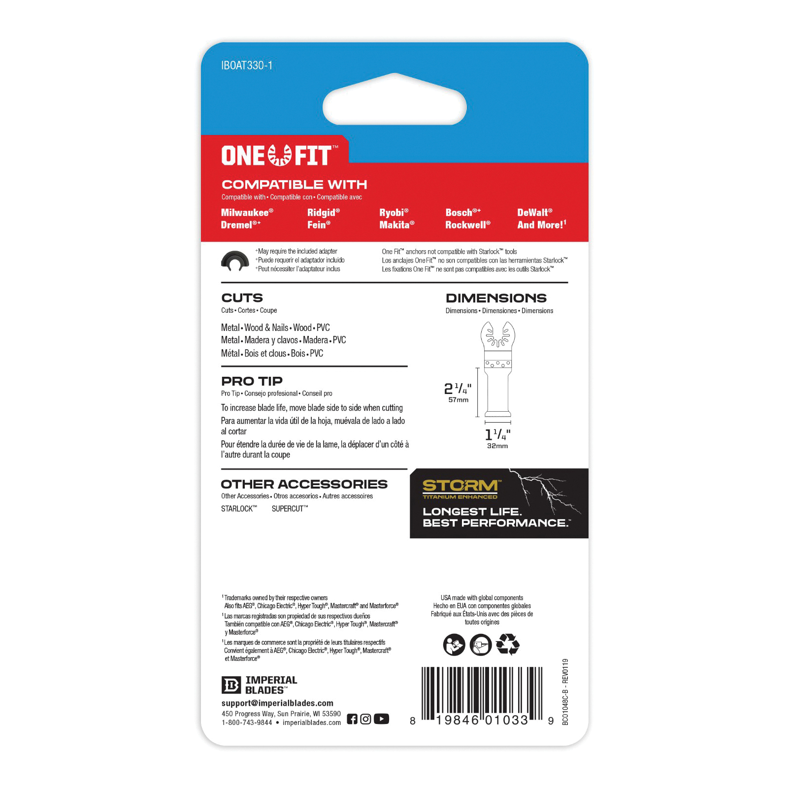 Imperial ONE FIT™ IBOAT330-1 Multi-Material Metal/Wood Blade, For Use With Milwaukee, Ridgid, Ryobi, Bosch, DeWalt, Dremel, Fein, Makita, Rockwell Imperial ONE FIT™ Anchor Fits Majority of Non-Imperial STARLOCK™ Multi-Tool, 1 in Arbor, 1-1/4 in, Bi-Metal
