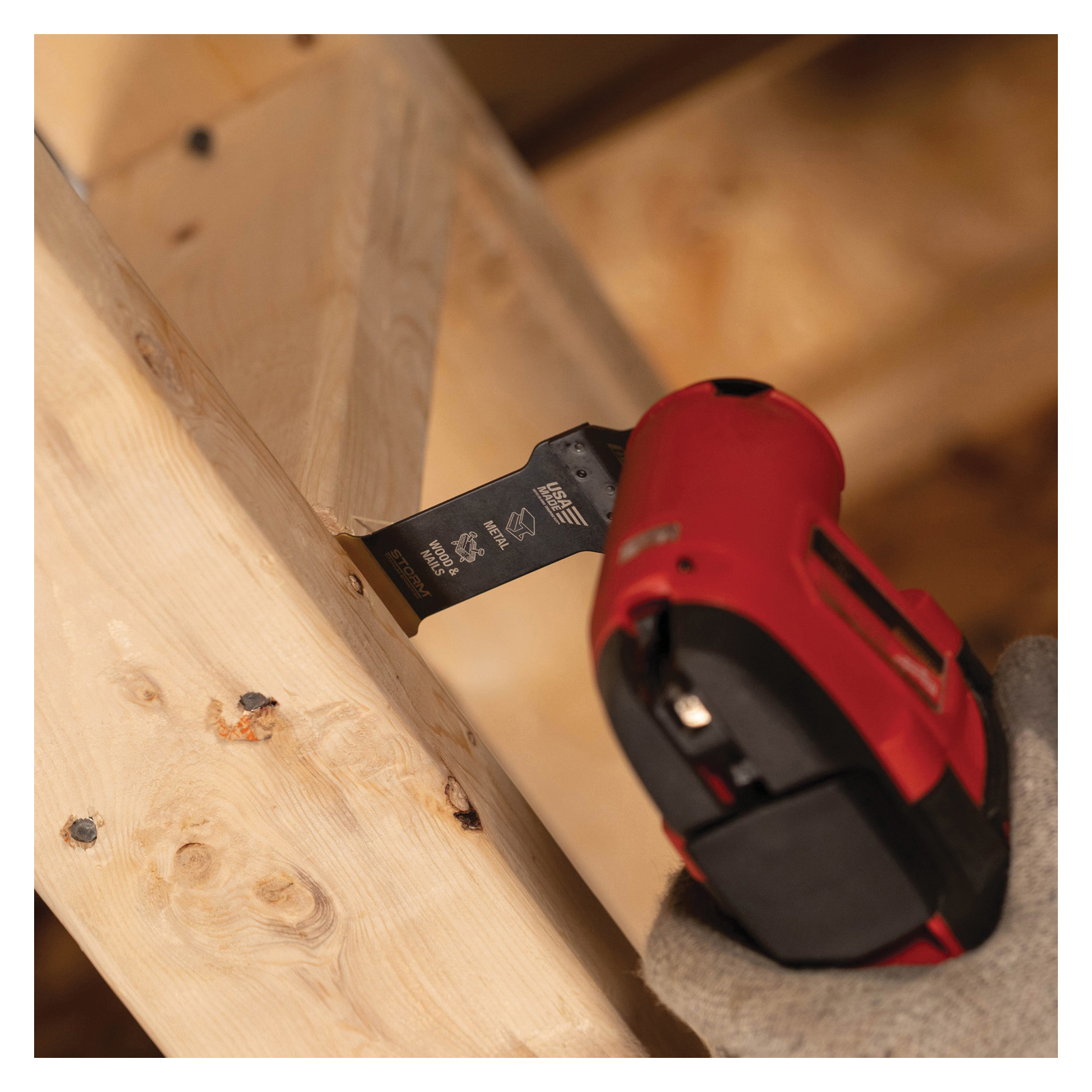 The MILWAUKEE® OPEN-LOK™ 9 PC Oscillating Multi-Tool Blade Set provides you with an assortment of blades for metal, multi-material, hardwood, and clean wood cutting applications. This set includes a NITRUS™ Carbide Extreme Metal blade that provides the ultimate cutting experience, delivering the fastest cutting and longest life on the job site. The extreme metal NITRUS™ Carbide multi-tool blade delivers up to 2X more cuts than Carbide Teeth blades - capable of hundreds of cuts in deck screws. TITANIUM CHARGED™ Bi-Metal blades have an optimized titanium blend for maximum wear-resistance and up to 15x longer life vs. high carbon steel (HCS) blades. These bi-metal multi-tool blades are ideal for wood with nails, PVC, and drywall. The Triple-Ground Japanese Tooth hardwood blades deliver up to 2X faster cuts than the previous MILWAUKEE® HCS blades and feature a PRO-CURVE™ cutting edge for greater control. The Japanese Tooth blades are ideal for fast, clean cuts in hardwood and can also be used in clean wood, PVC, and drywall. The set also includes high carbon steel (HCS) blades designed with aggressive, edge-ground teeth for fast wood cutting. These blades feature a reinforced Universal Fit OPEN-LOK™ anchor for better strength & control and allow for quick blade changes across 100+ multi-tools. Not compatible with Starlock tools. The compact modular oscillating blade case fits in PACKOUT™ and features 3 removable pegs for complete storage customization.