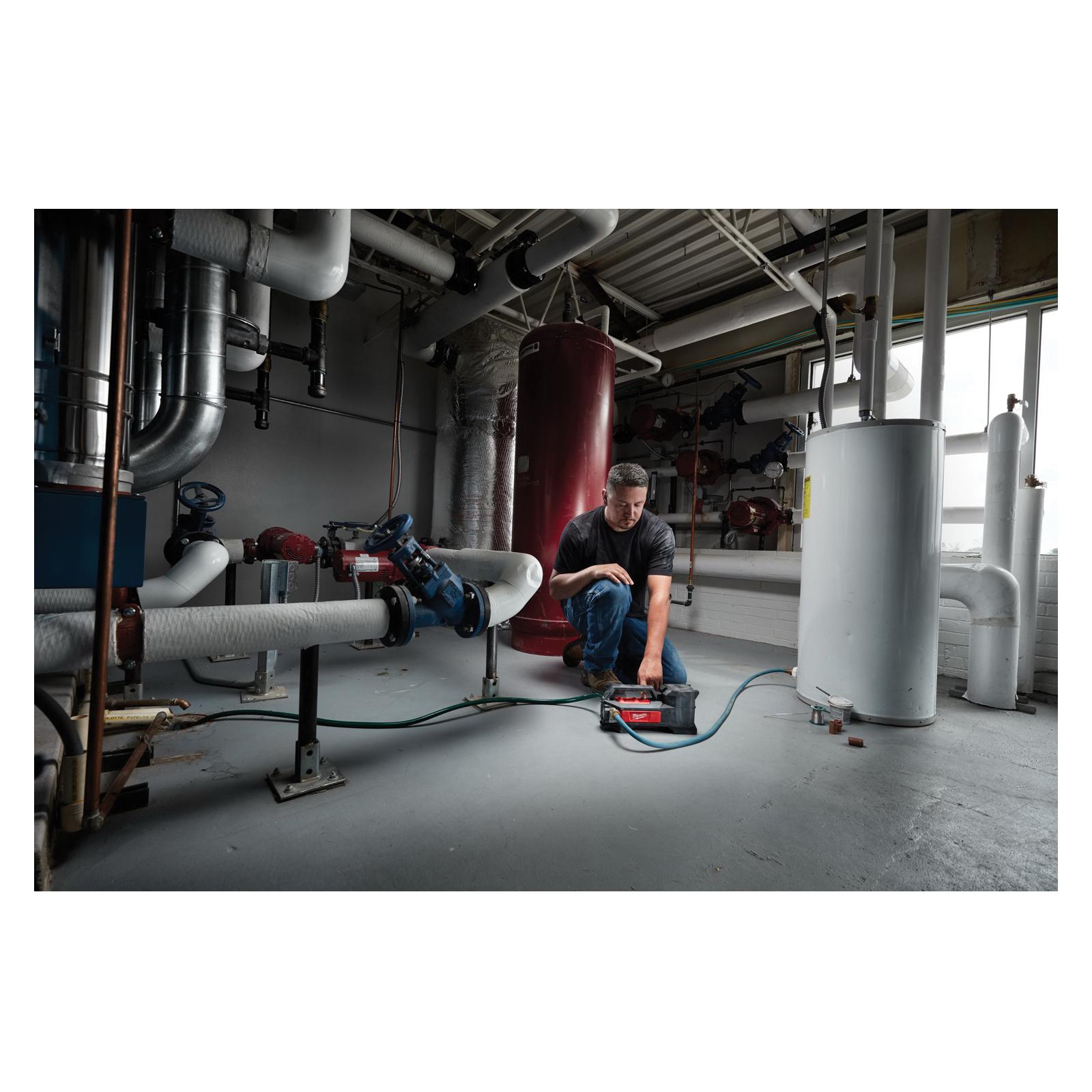 Faster water transfers, faster service calls. The M18™ transfer pump is the industry's first cordless transfer pump with the fastest setup in the marketplace. With an innovative self-priming pump, you can connect and go quicker than ever. The tool's flexible impeller and powerful pump moves water at up to 480 gallons per hour, generates up to 18 Ft. of lift and produces up to 75 Ft. of head height. As a part of the M18™ system of tools, it is powered by REDLITHIUM™ battery packs, which deliver up to 144 gallons moved per charge on a XC extended capacity battery pack included in the kit. On board REDLINK™ Intelligence can recognize when the tool stops moving water and automatically shuts itself off to avoid dry pumping. Additionally, REDLINK™ provides optimized performance, and overload protection abusive situations.