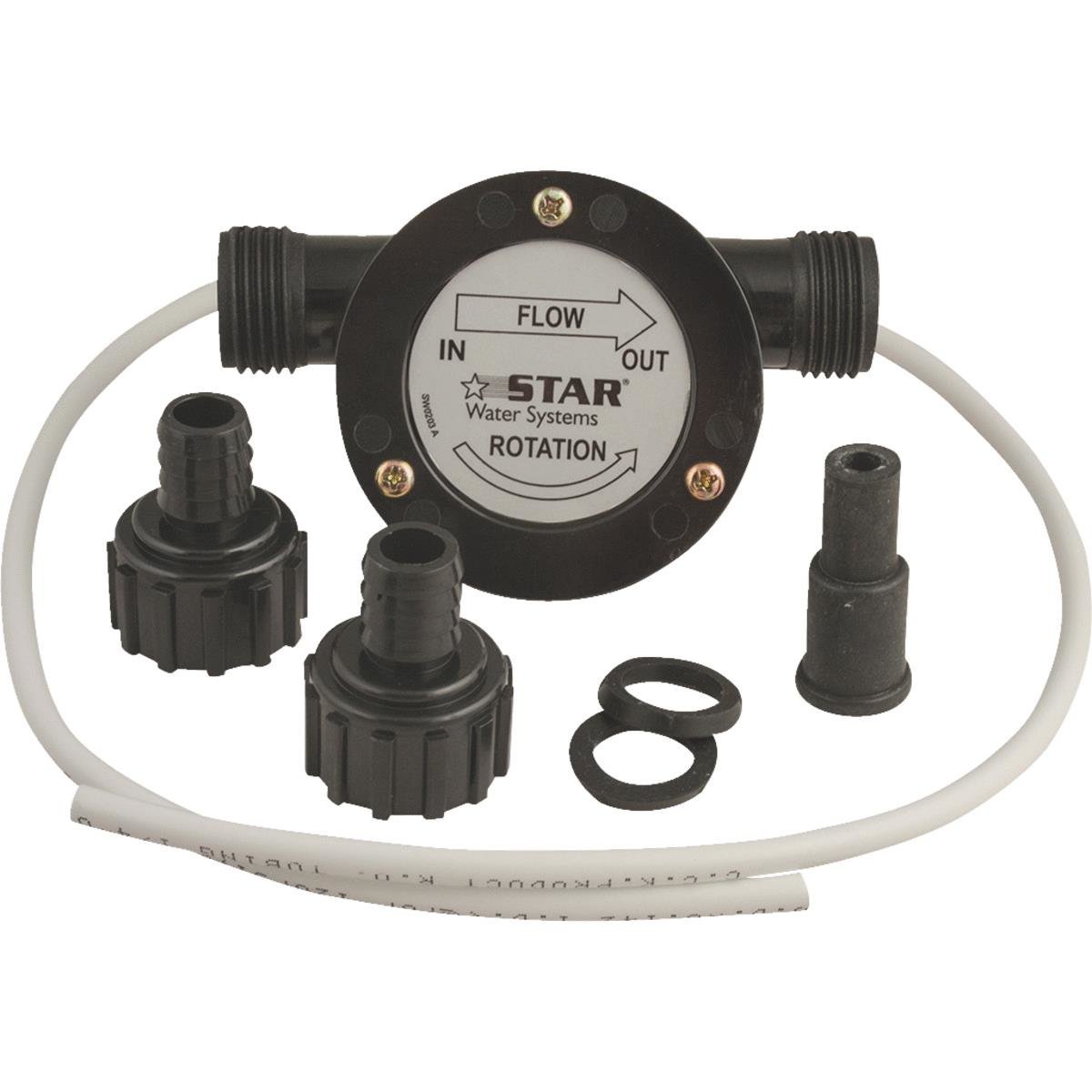 DRILL PUMP KIT, KIT INCLUDES PLASTIC TUBING, DISCHARGE HOSE, AND PUMP. A GARDEN HOSE CAN BE USED.-JWH322387 >
