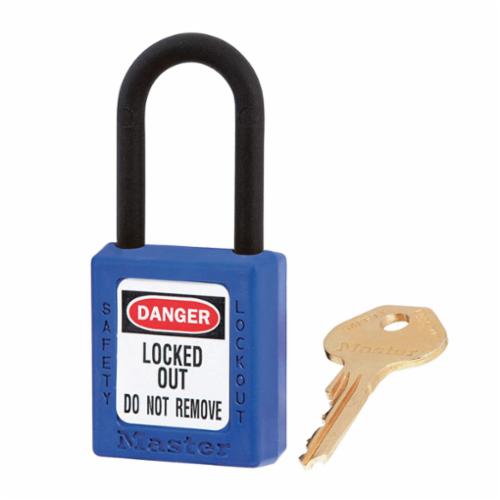 Master Lock® 406BLU Zenex™ 406 Dielectric Lockout Padlock, Different Key, Blue, Thermoplastic Body, 1/4 in Dia x 1-1/2 in H x 25/32 in W Nylon Shackle, 1-3/4 in L Body