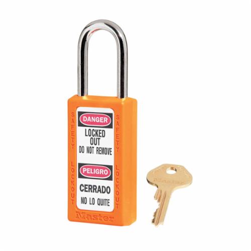 Master Lock® 411ORJ Zenex™ 411 Lockout Padlock, Different Key, Orange, Thermoplastic Body, 1/4 in Dia x 1-1/2 in H x 25/32 in W Hardened Steel Shackle, 3 in L Body