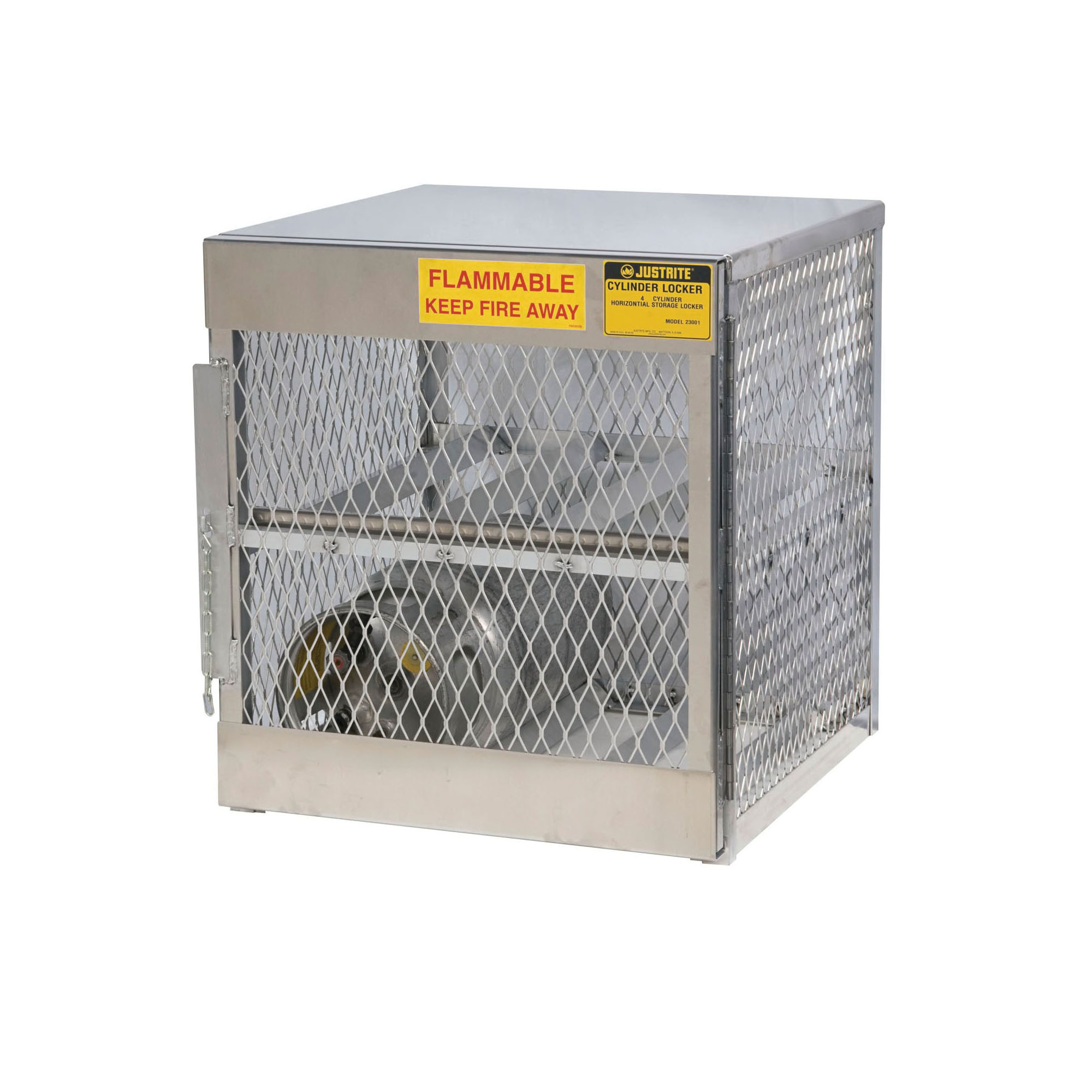Justrite® 23001 Horizontal LPG Cylinder Locker, (4) 20 lb/33 lb, 33-1/2 in H x 30 in W x 32 in D, Aluminum Roof, Welded Aluminum, Aluminum