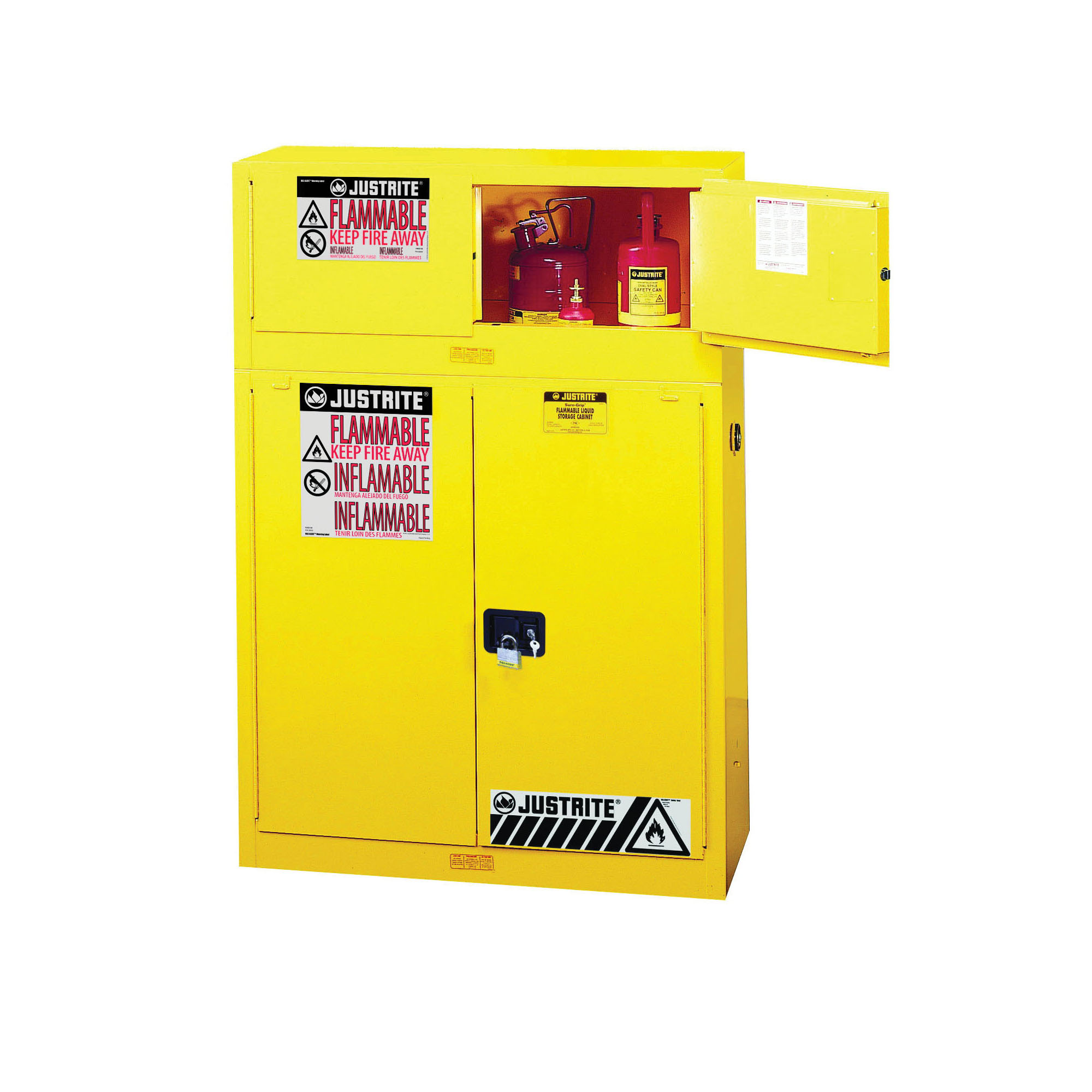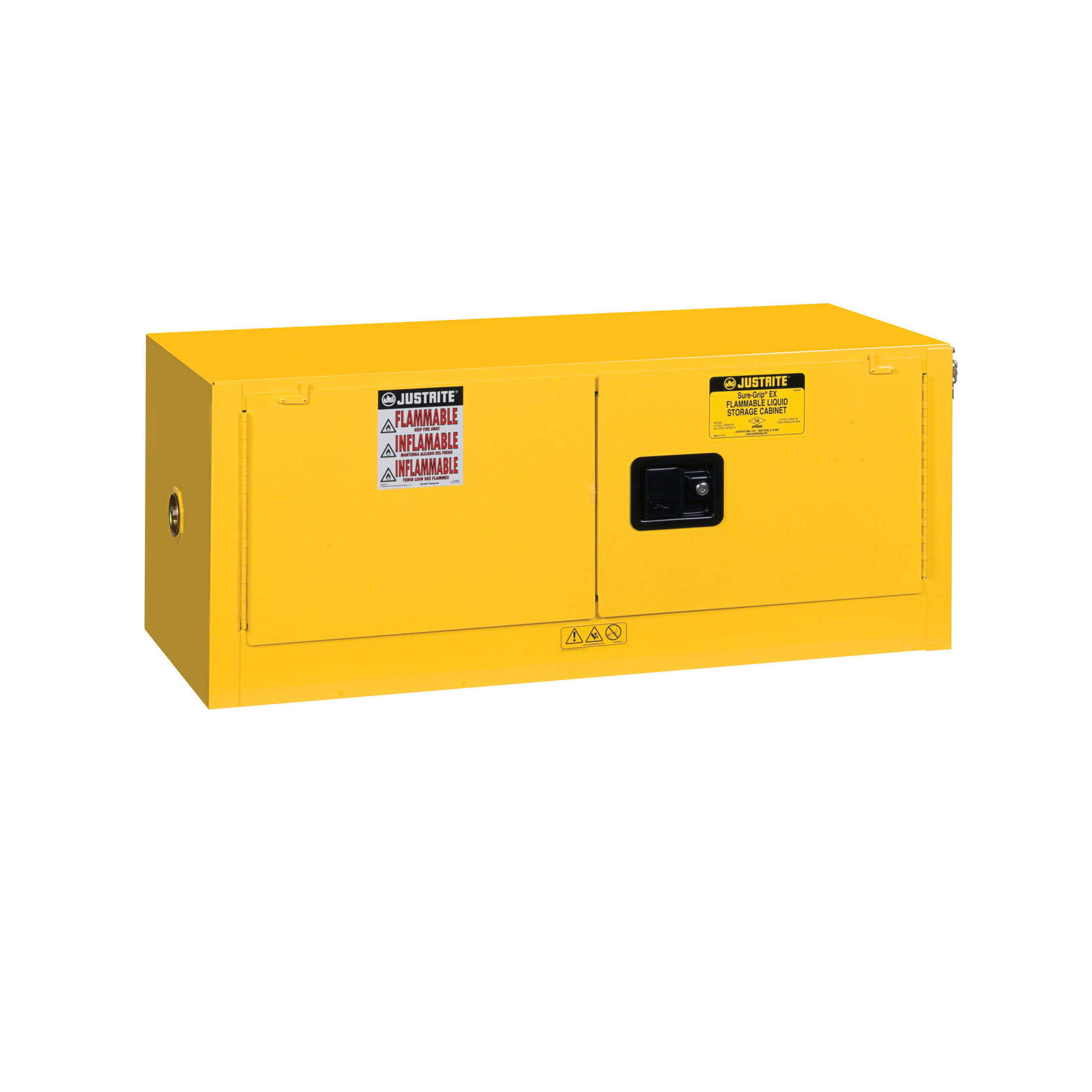 Create a safe storage for flammables without taking up valuable floor space. Designed to mount on top of 30- and 45-gallon (114- and 170-L), manual Sure-Grip® EX cabinets. They can also be used independently as a benchtop cabinet or stacked to provide additional storage. Turn it into a wall-mount cabinet by ordering a mount kit assembly JCB259501. Available in manual close or self-close. For the safe storage of flammable liquids to avoid risk of potential fire hazards and chemical spills in industries like chemical manufacturing, petrochemical and laboratories.