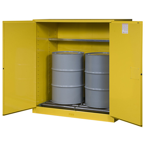 110-GAL YELLOW VERTICAL DRUM SAFETY CABINET WITH DRUM ROLLERS - JUSRL25760>