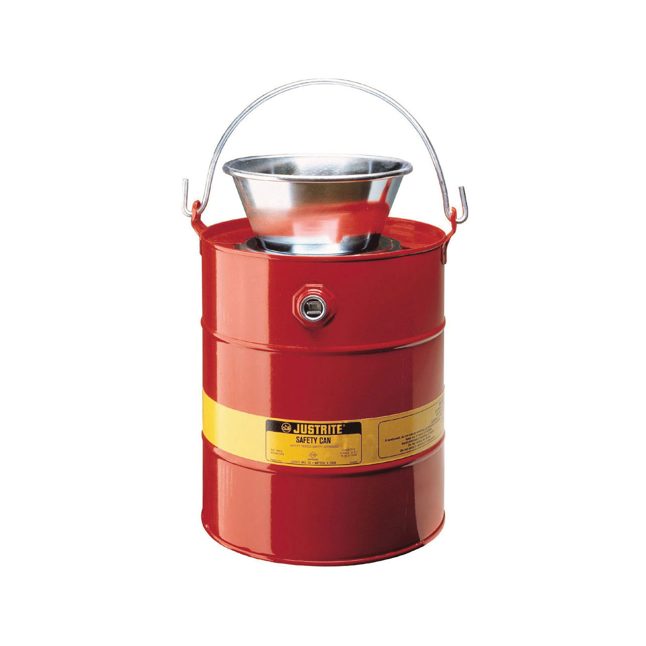Justrite® 10905 Drain Can With Plated Steel Funnel, 5 gal Capacity, 11-5/8 in Dia, 16-3/4 in H, Steel, Red, FM Approved