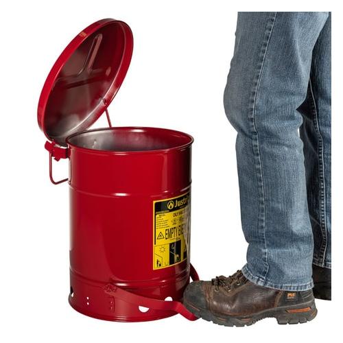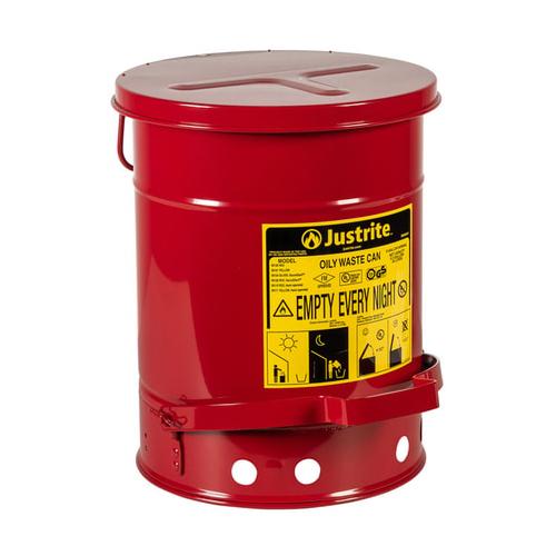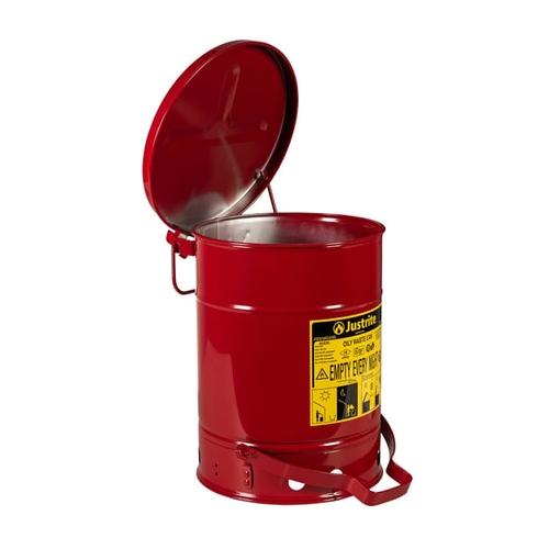 Justrite® 9100 Oily Waste Can, 6 gal Capacity, 15.87 in H, Steel, Red