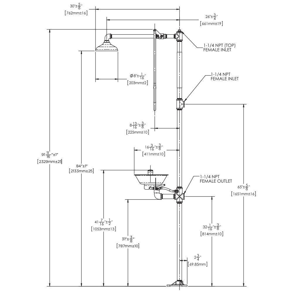 Speakman® traditional series combination emergency stations provide the highest level of performance in times of need. All traditional series combination stations feature a high performance emergency shower head and a 1-1/4 in DuraJade™ powder coated stanchion. The Speakman® traditional series SE-690 combination emergency station with stainless steel bowl eye/face wash features a stay open ball valve, allowing hands-free operation once the shower has been activated and an SE-490 eye face wash. The high-visibility yellow pull-rod, makes finding the SE-690 easy in an emergency.