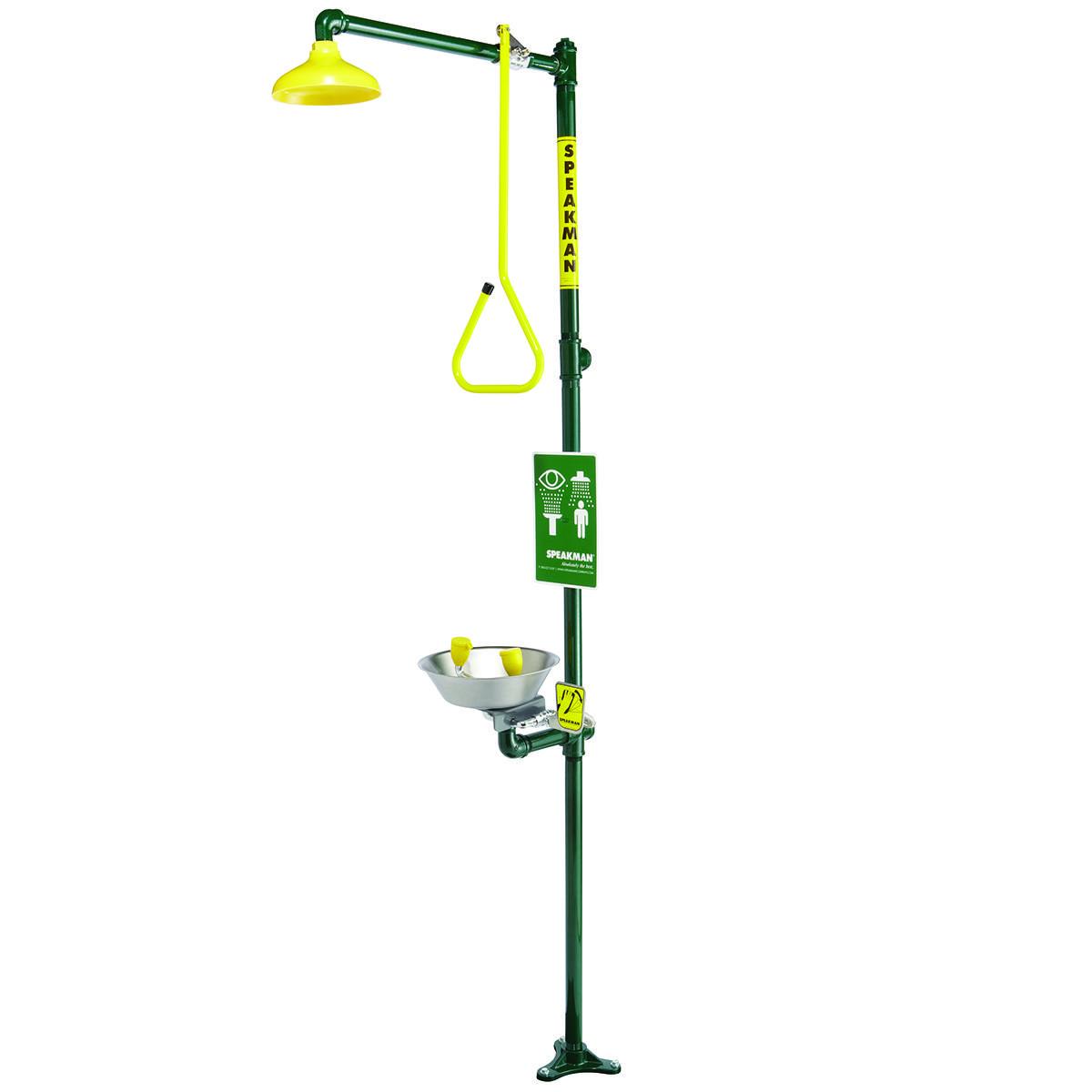 Speakman® SE-690 Traditional Round Emergency Combination Station, ABS Eyewash Bowl, ABS Shower Head, Floor Mount, Pull Rod Operation, ANSI/ISEA Z385.1, OSHA Approved