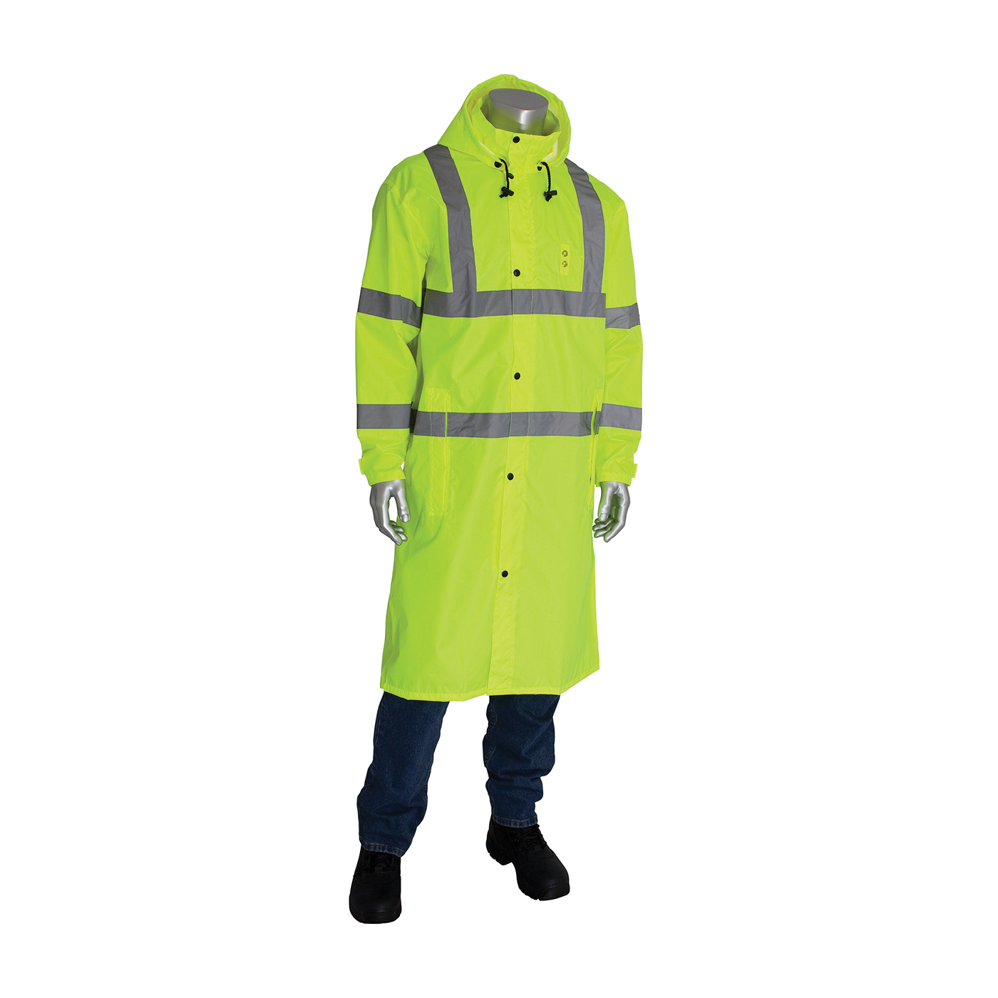 PIP® FALCON™ Viz™ 353-1048-LY/3X All Purpose Waterproof Rain Coat, 3XL, Hi-Viz Lime Yellow, 150D Polyester Coated with Polyurethane, Resists: Water, ANSI 107 Type R Class 3, Concealed Hood