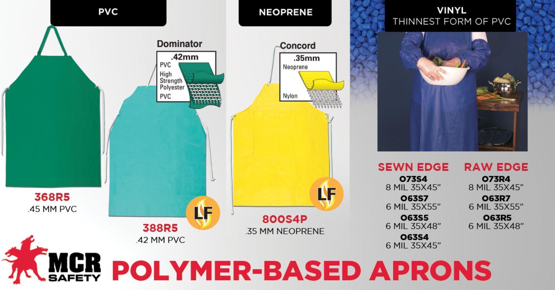 MCR Safety O63R5 Chemical-Resistant Raw Edge Apron, Vinyl, 4 ft L x 35 in W