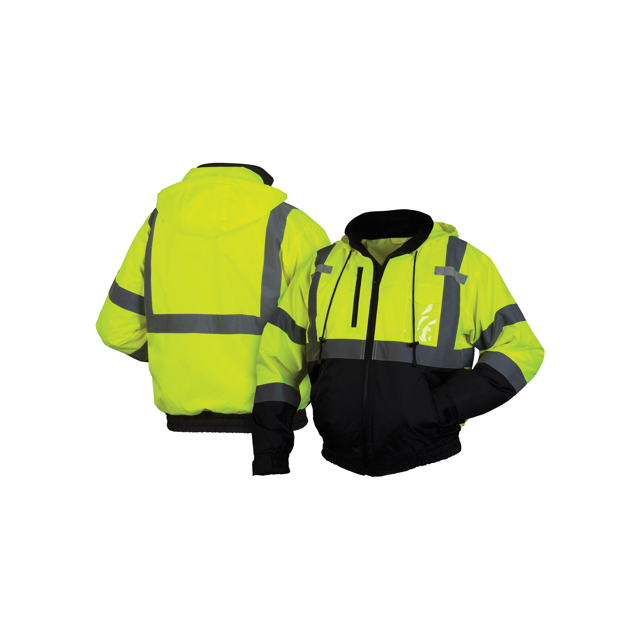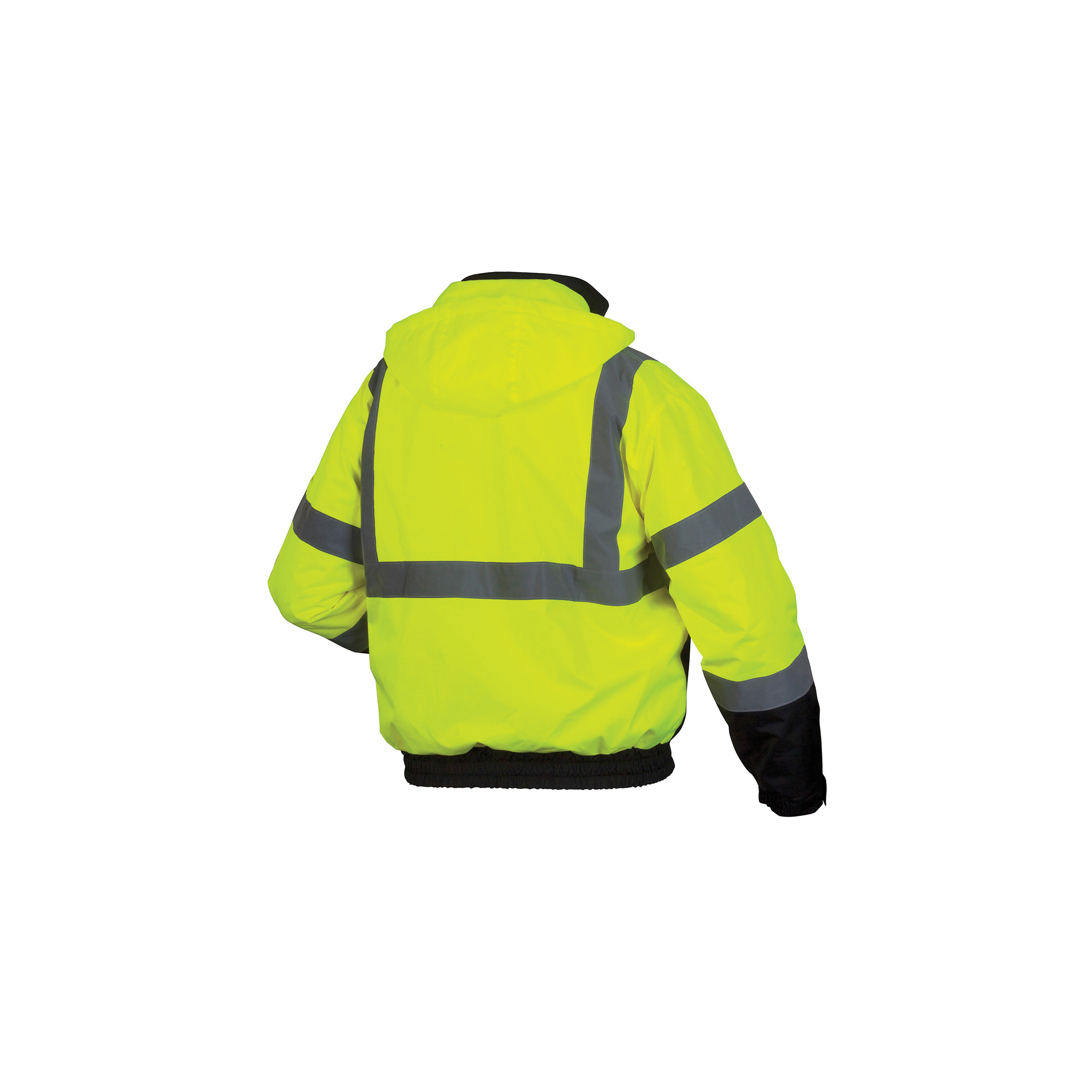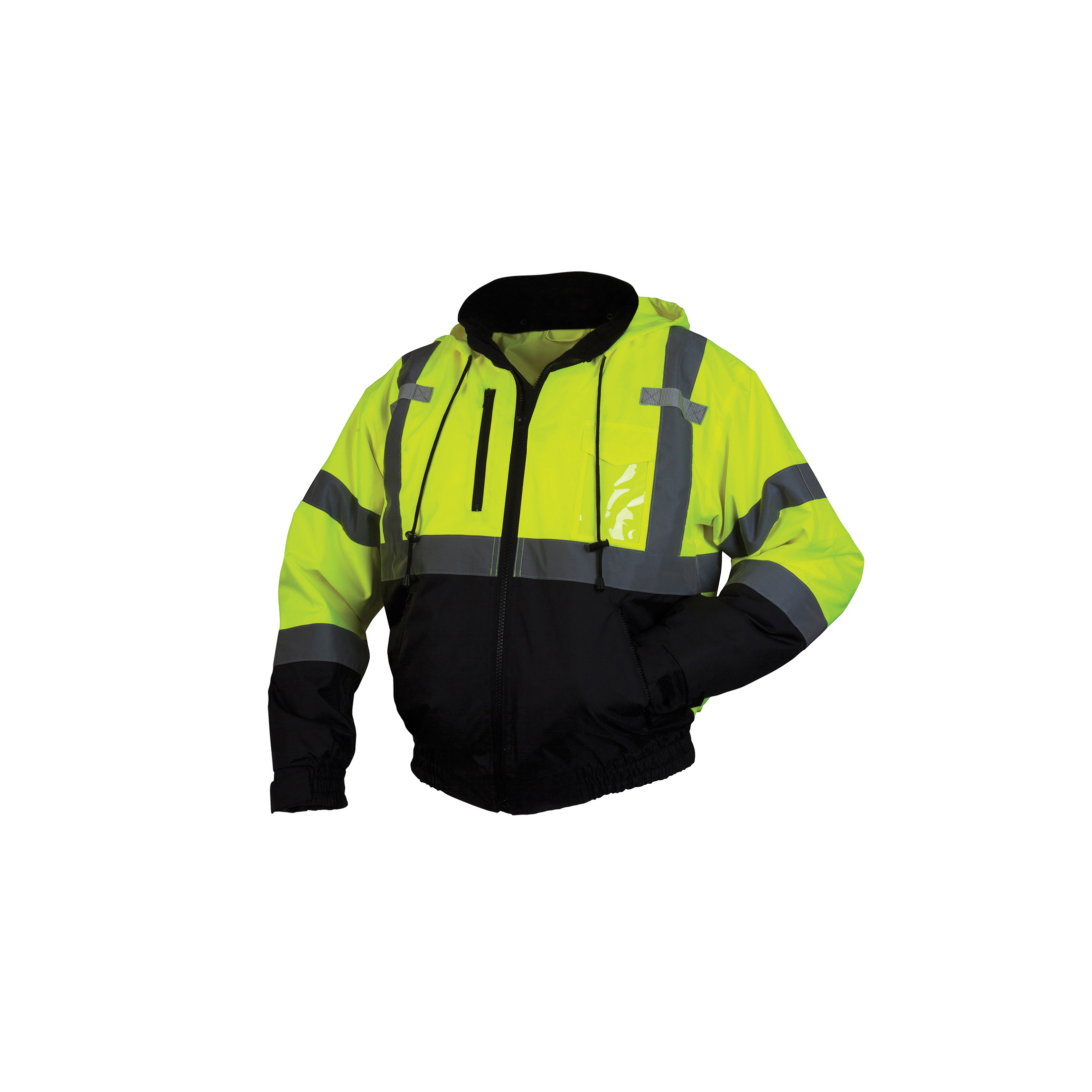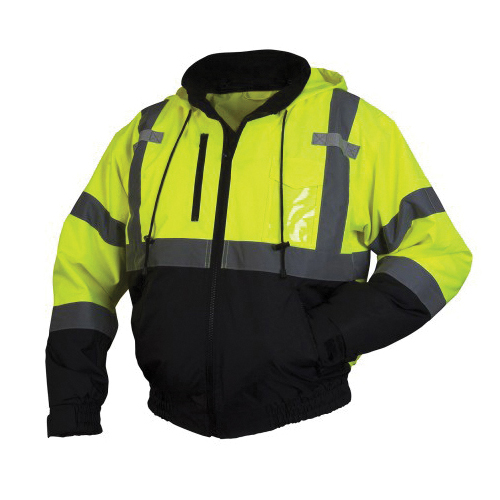 Pyramex® RJ3110M Bomber Jacket, Hi-Viz Lime, Polyester Shell, 38 to 40 in Chest, Resists: Weather, ANSI Class 3 Type R