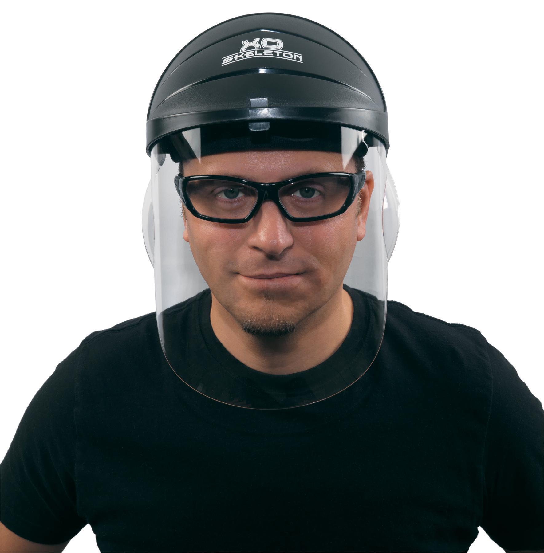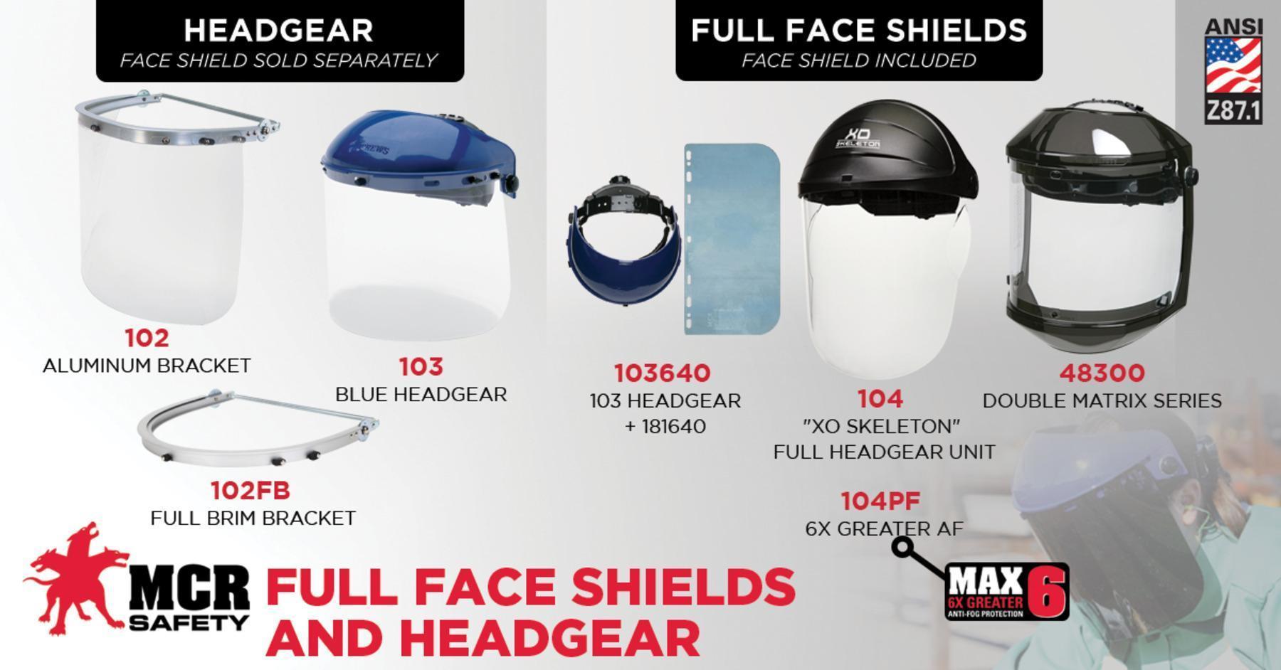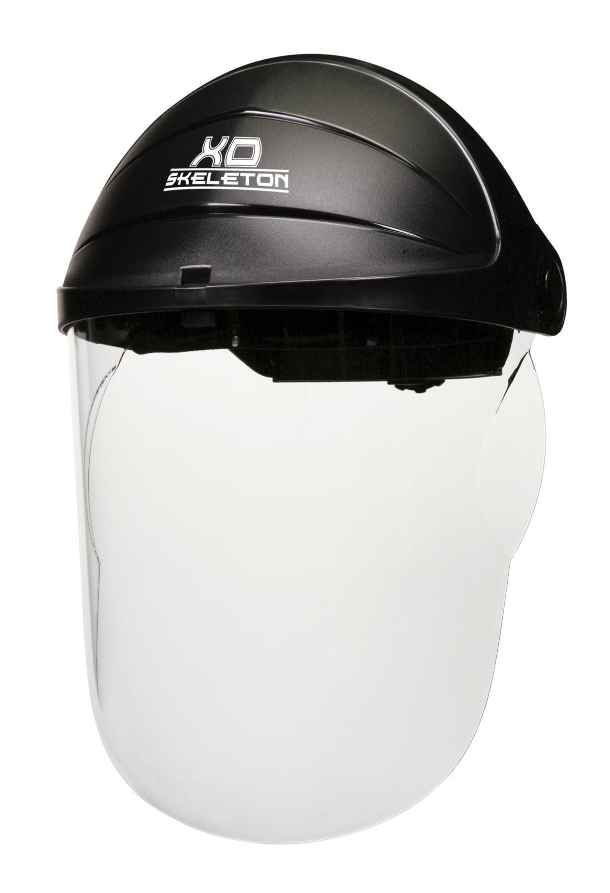 "XO Skeleton" Headgear Black 1 Piece Molded Head Gear Available with Clear or Gray Face Shield Adjustable Face Shield Lifts and Lowers Terrycloth Sweatband Helps protect the face and neck MCR Safety's headgear and face shields offer superior protection from liquid splashes and flying debris that would otherwise be damaging to the face. An assortment of brackets, face shield sizes, and materials make it a good bet that you can find an option suitable for you. The 105 XO Skeleton features an integrated one-piece molded polycarbonate face shield providing better optical quality. A ratchet action adjustment with a terrycloth sweatband provides a precise fit and maximum comfort. Retail packaged. If you are looking for the best face shield options, look no further than MCR Safety! This product meets the ANSI/ISEA Z87.1 2020 standard.
