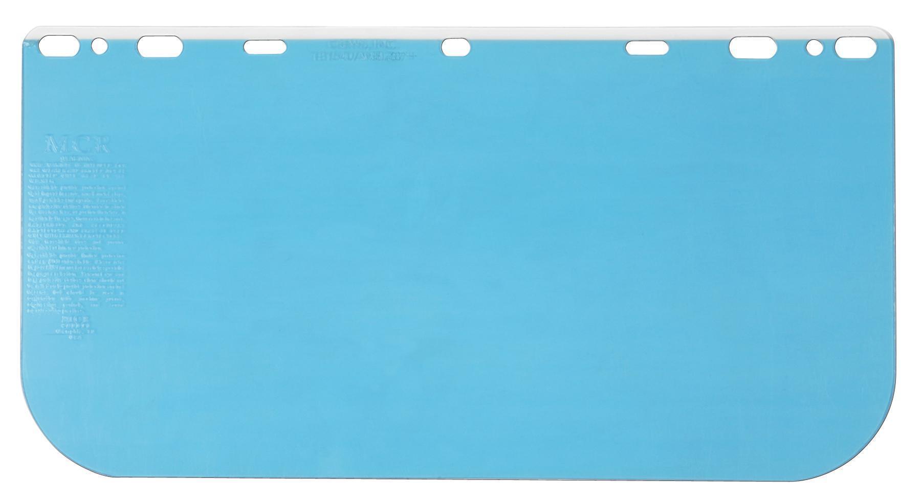 Safety Face Shield - Universal Clear Impact Resistant Polycarbonate Material 8 Inches x 16 Inches .040 Inches in Thickness Excellent for splash protection and impact resistance MCR Safety's headgear and face shields offer superior protection from liquid splashes and flying debris that would otherwise be damaging to the face. An assortment of brackets, face shield sizes, and materials make it a good bet that you can find an option suitable for you. The 181540 is a clear Polycarbonate visor that measures 8 x 16 x .040 inches thick. Find the best face shields at MCR Safety! This product meets the ANSI/ISEA Z87.1-2025 standard.