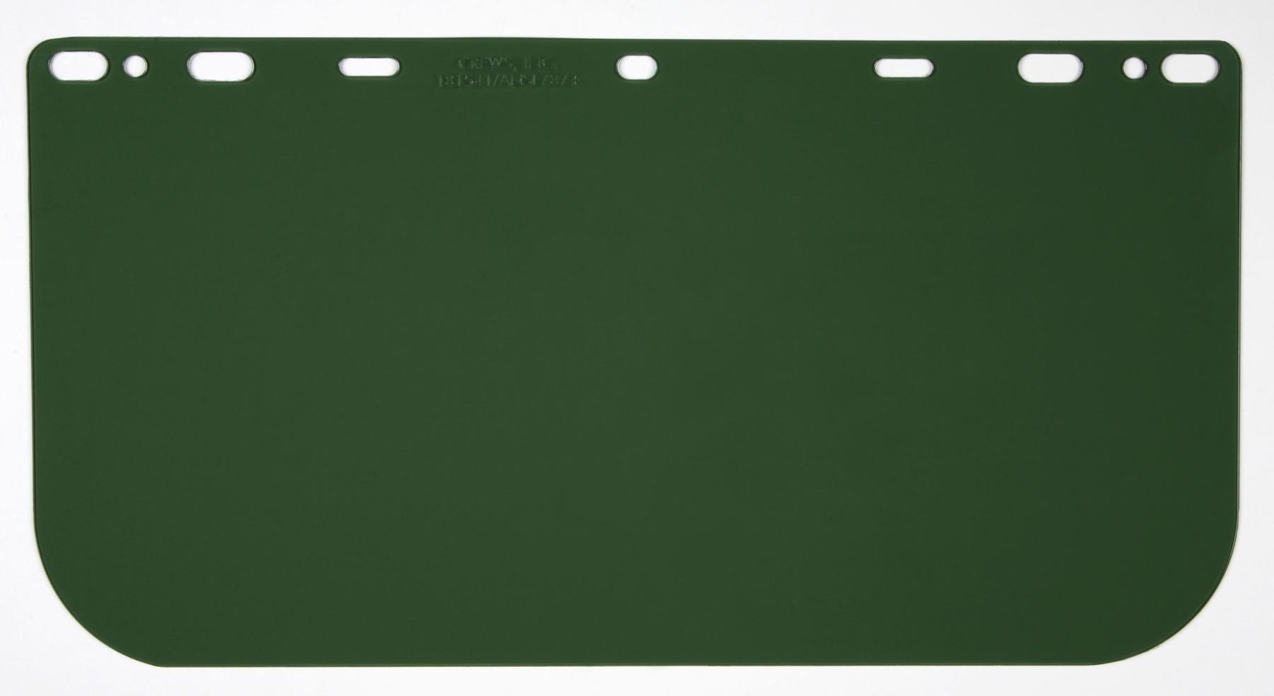 MCR Safety 181541 Faceshield Visor, Medium Green, Polycarbonate, 8 in H x 15-1/2 in W x 0.04 in THK Visor, ANSI Z87+