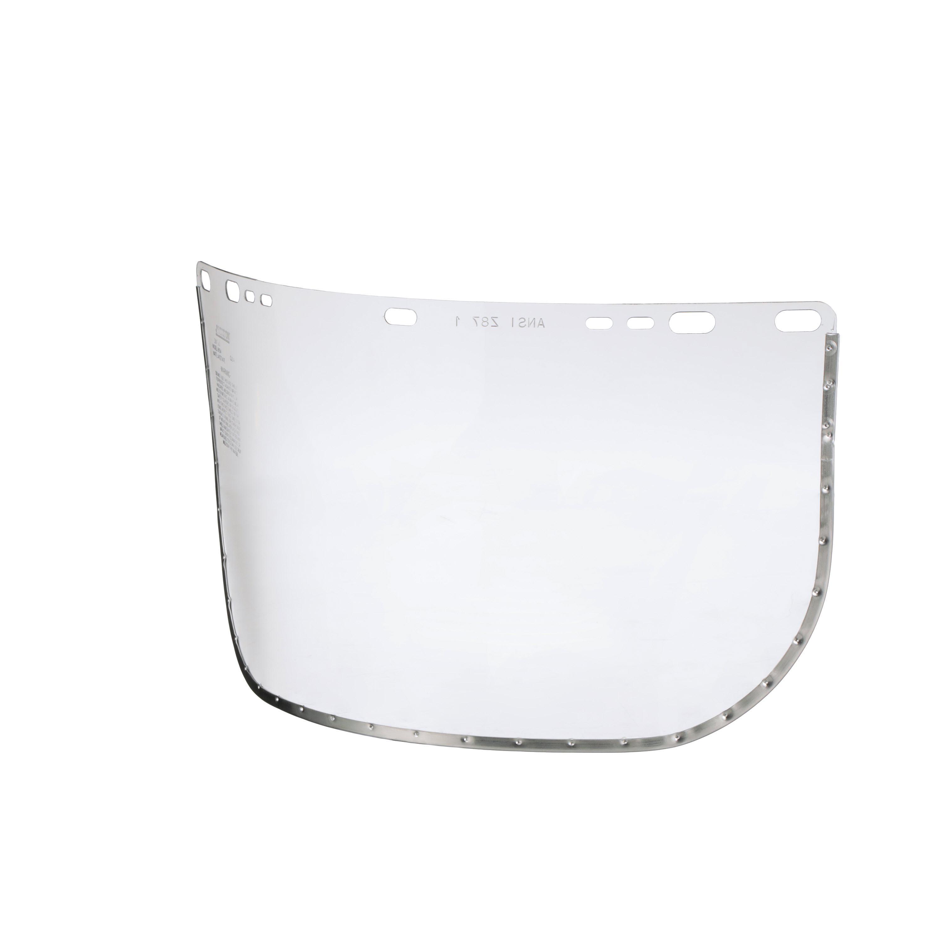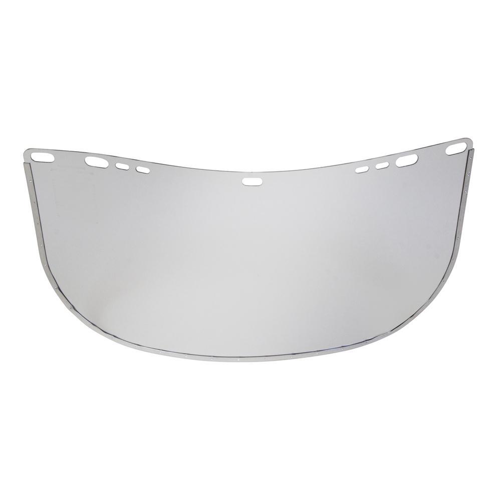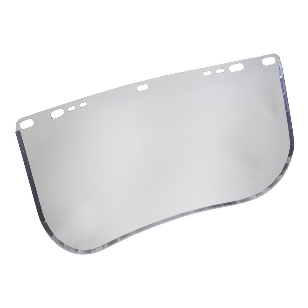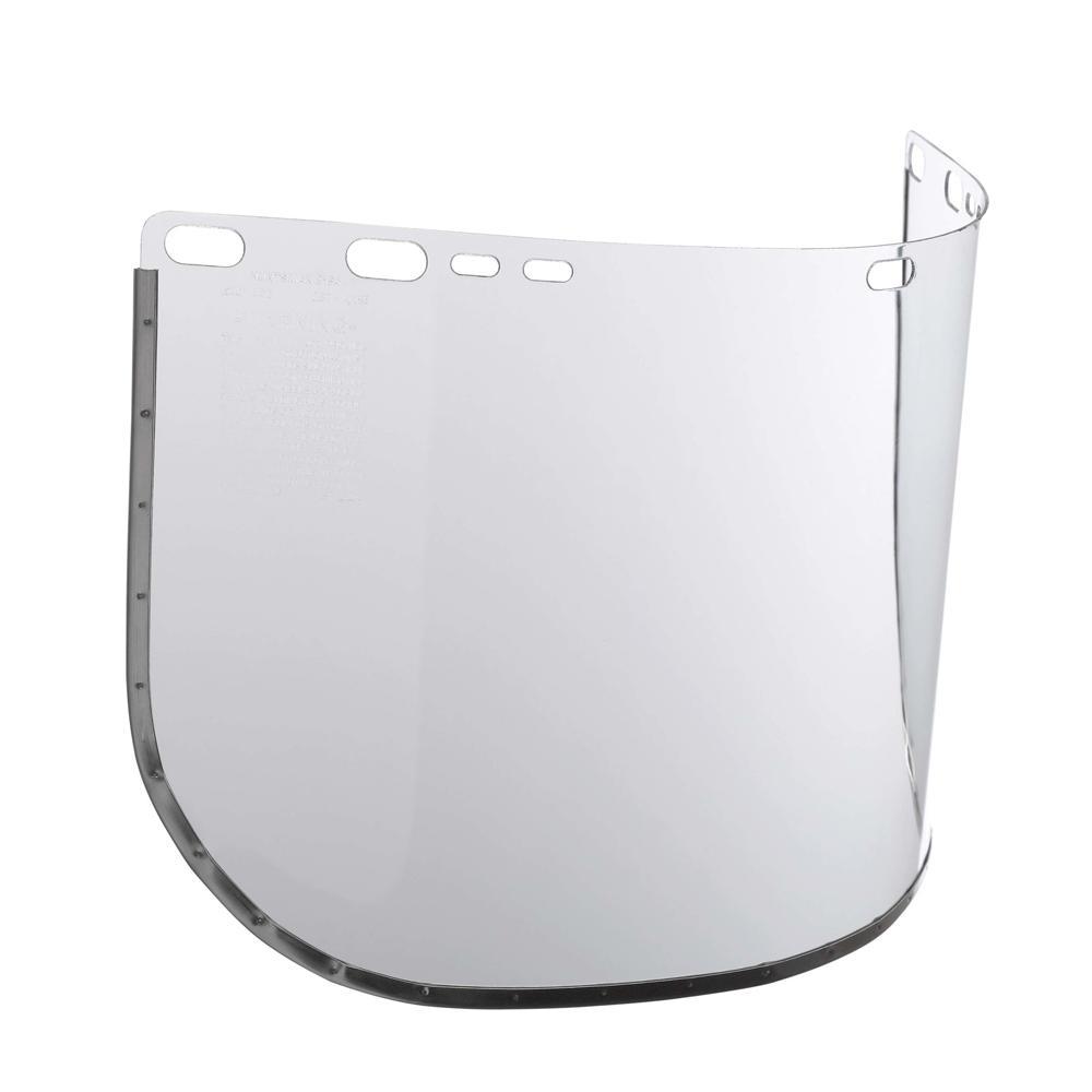 Jackson safety F30 acetate faceshield are designed to provide on-the-job protection from dust and splashes. Made of durable acetate, the face protection shield measures 8 in H x 15.5 in W x 0.04 in Thk and may be used over and over (depending on the task). The clear faceshield allows for maximum light transmission and visibility and is designed for use in light industrial manufacturing, general splash protection, landscaping and food processing. It’s compatible with the hard hat interchange system. It snaps into place on compatible headgear and hard hats - no special tools required. This model is bound with an aluminum brim, for ease of molding it to your chosen headgear