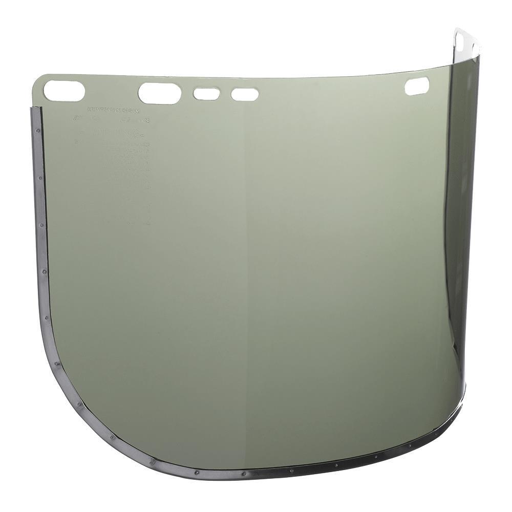 JACKSON SAFETY® 29053 F30 D Shape Bound Face Shield Window, Medium Green, Acetate, 8 in H x 15-1/2 in W x 0.04 in THK Visor, For Use With Headgear and Hard Hat Interchange System, ANSI Z87.1, CSA Z94.3