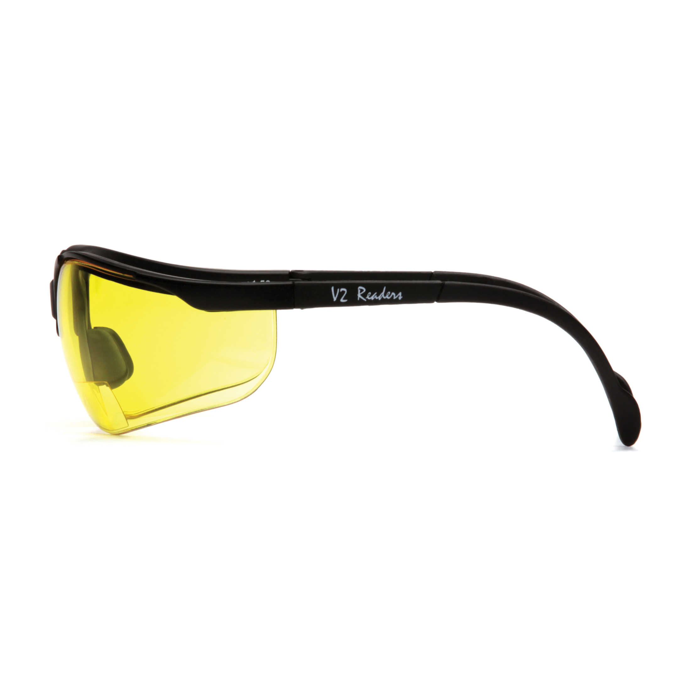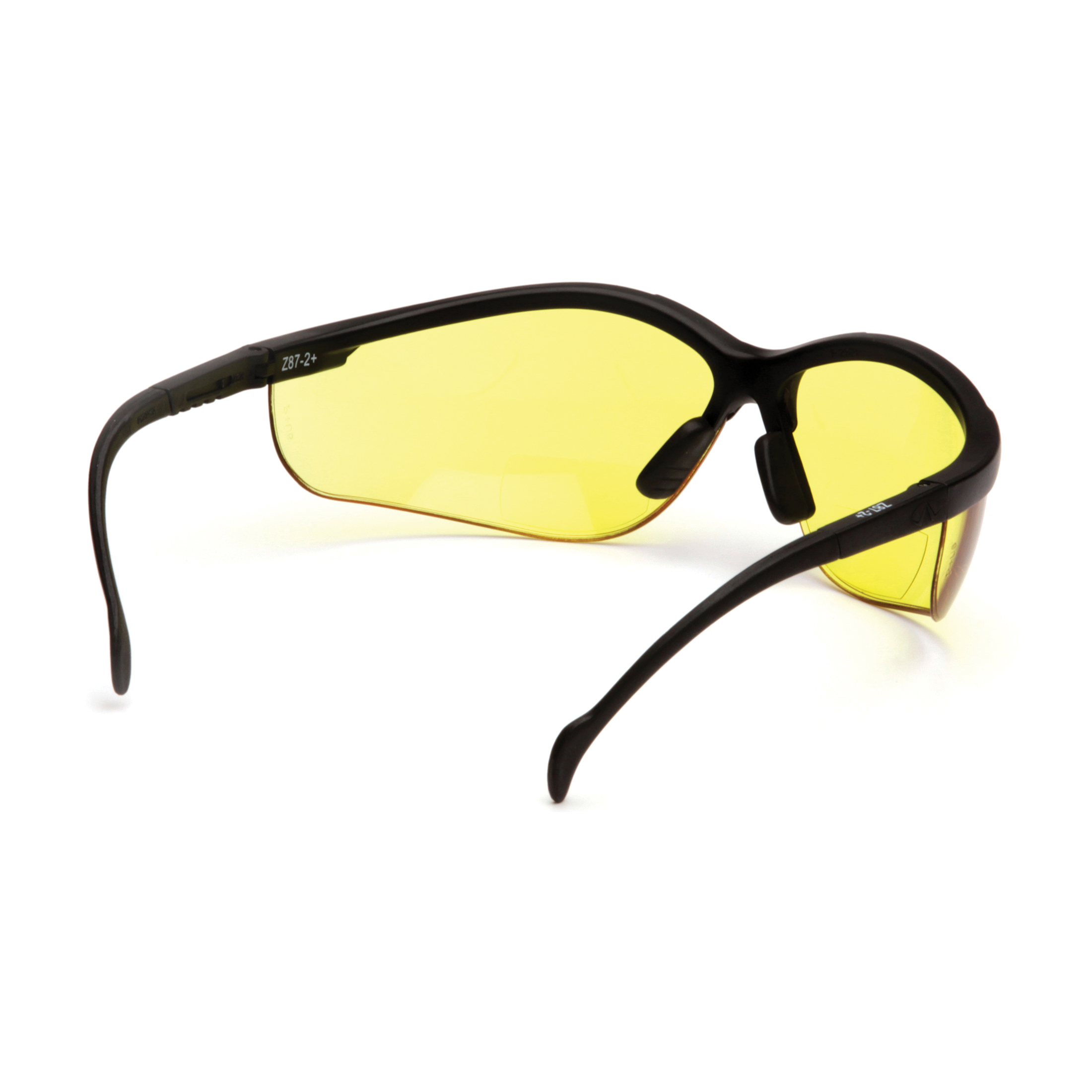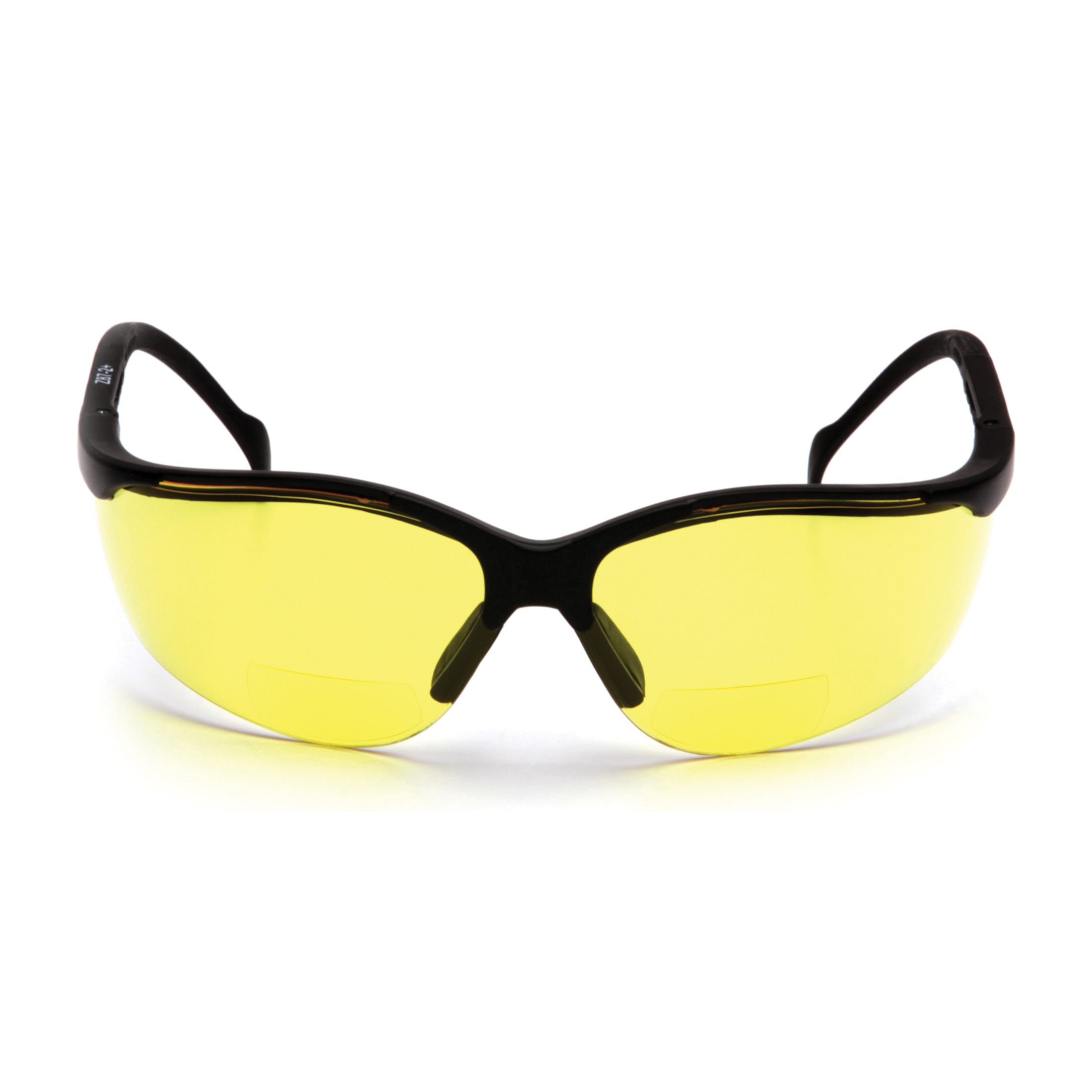 Pyramex® SB1830R20 Bi-Focal Lens Safety Reading Glasses, +2 Diopter, Amber Lens, Black, Polycarbonate Frame, Yes UV Protection, ANSI Z87.1+, MIL-PRF 32432